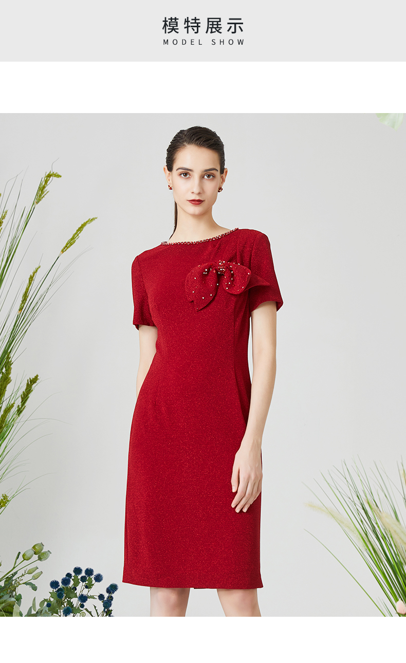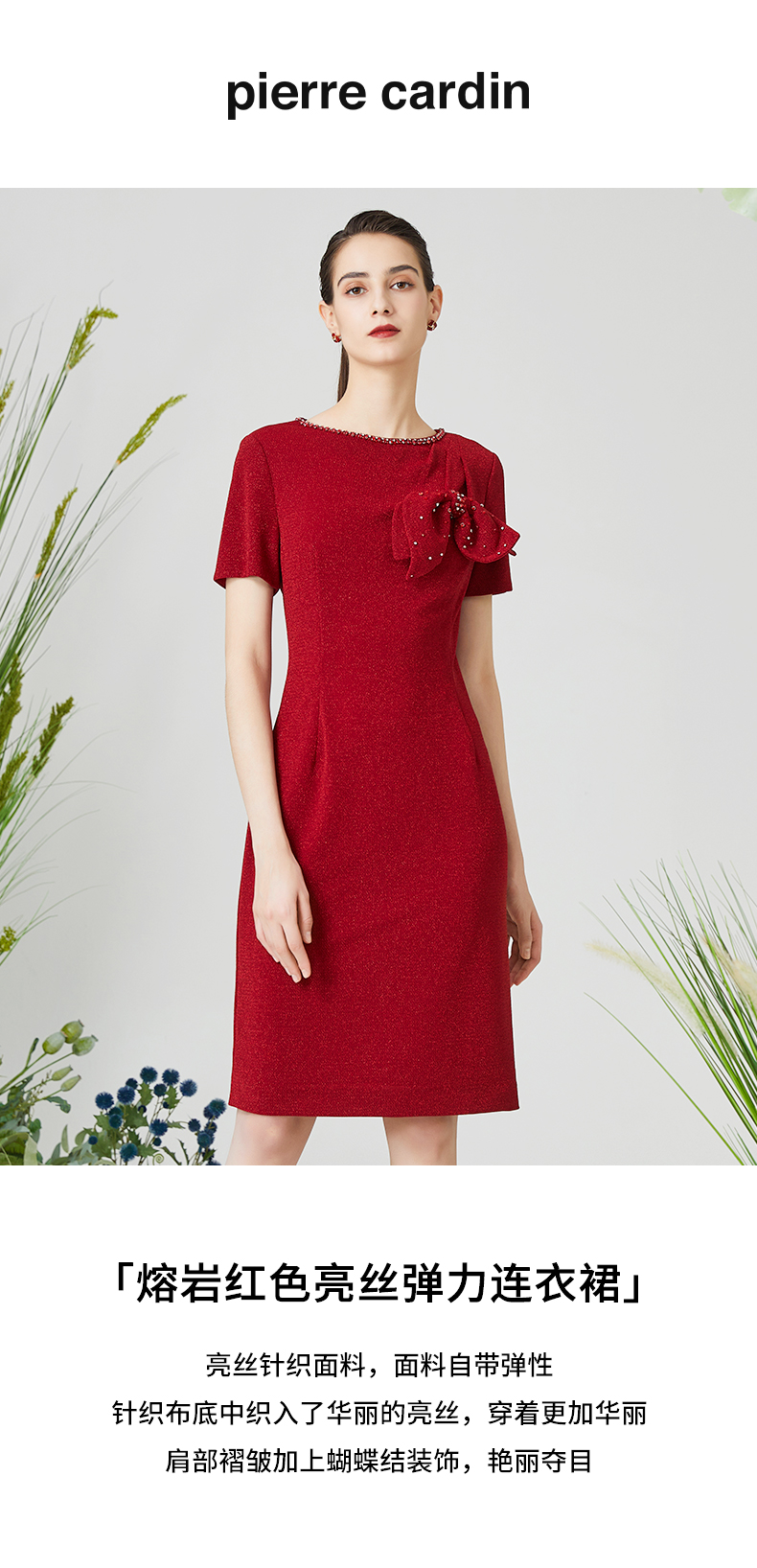 皮尔卡丹女装夏季新款通勤淑女修身礼服连衣裙P3140D3043R0