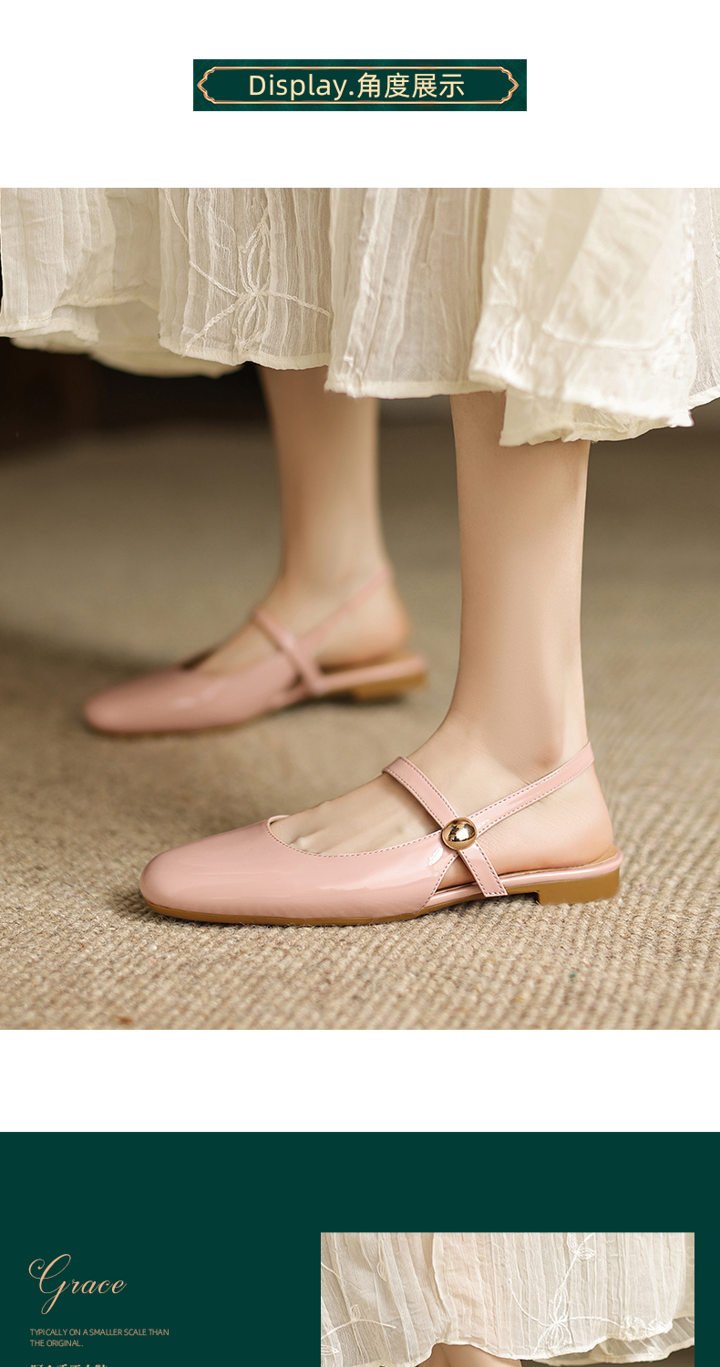 阿么手工女鞋漆皮小金扣凉鞋女夏季新款舒适百搭小众平底鞋1.5CM
