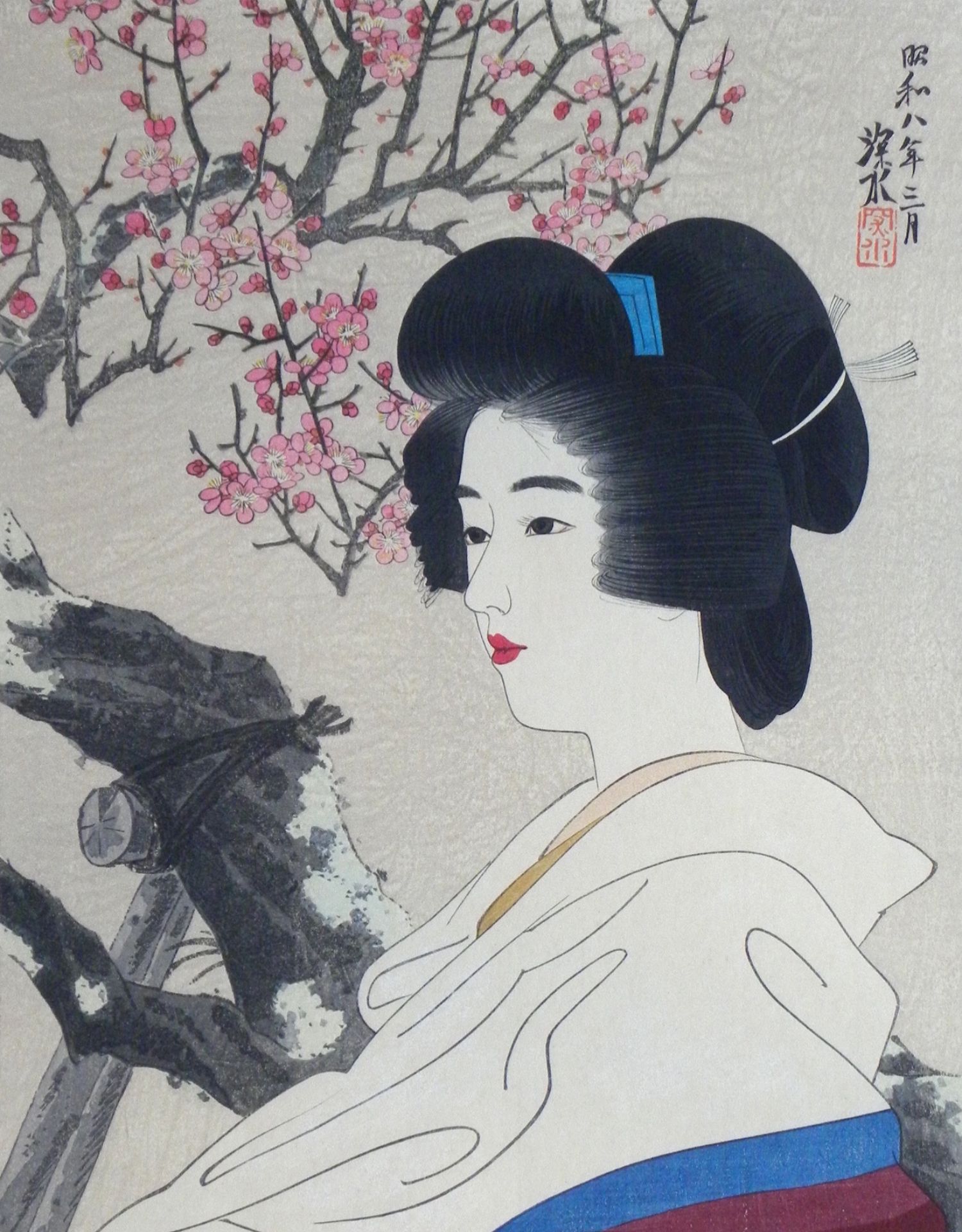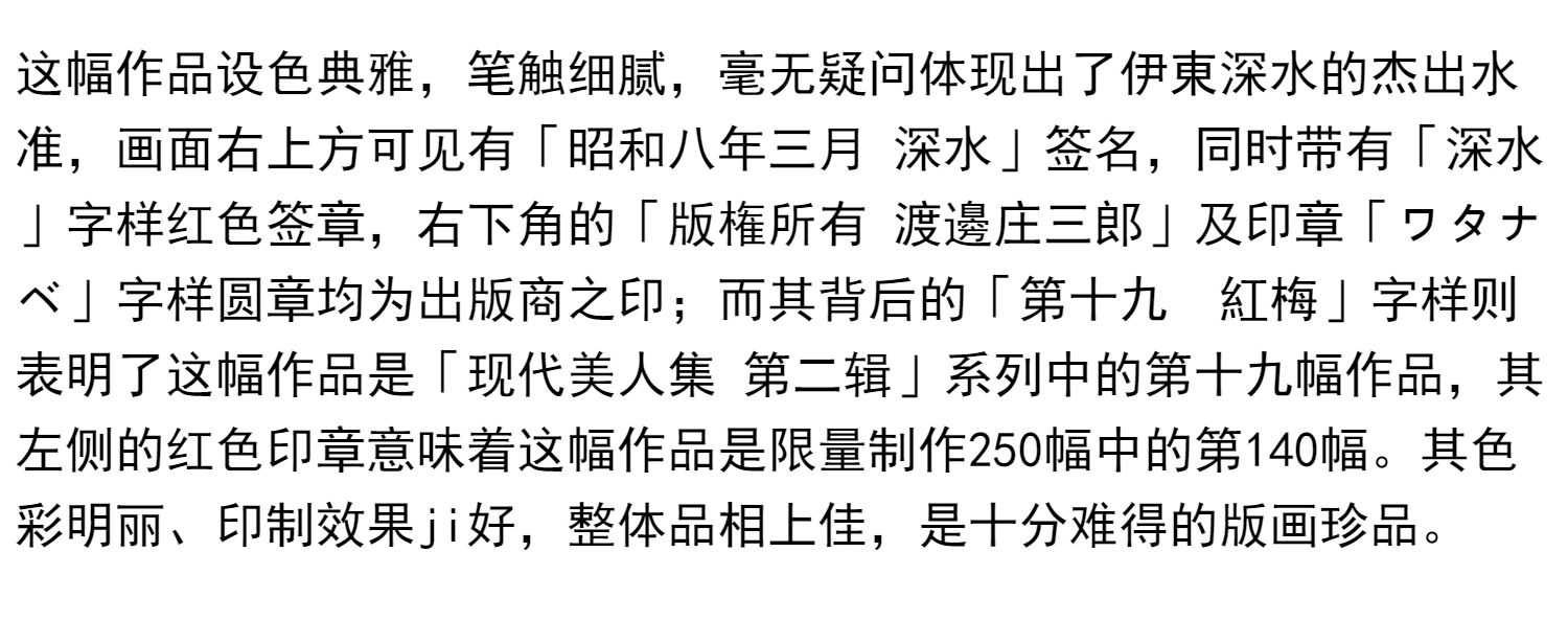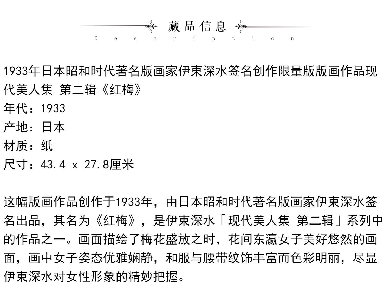 独角鹿西洋古董伊東深水签名限量浮世绘版画现代美人集第二辑红梅