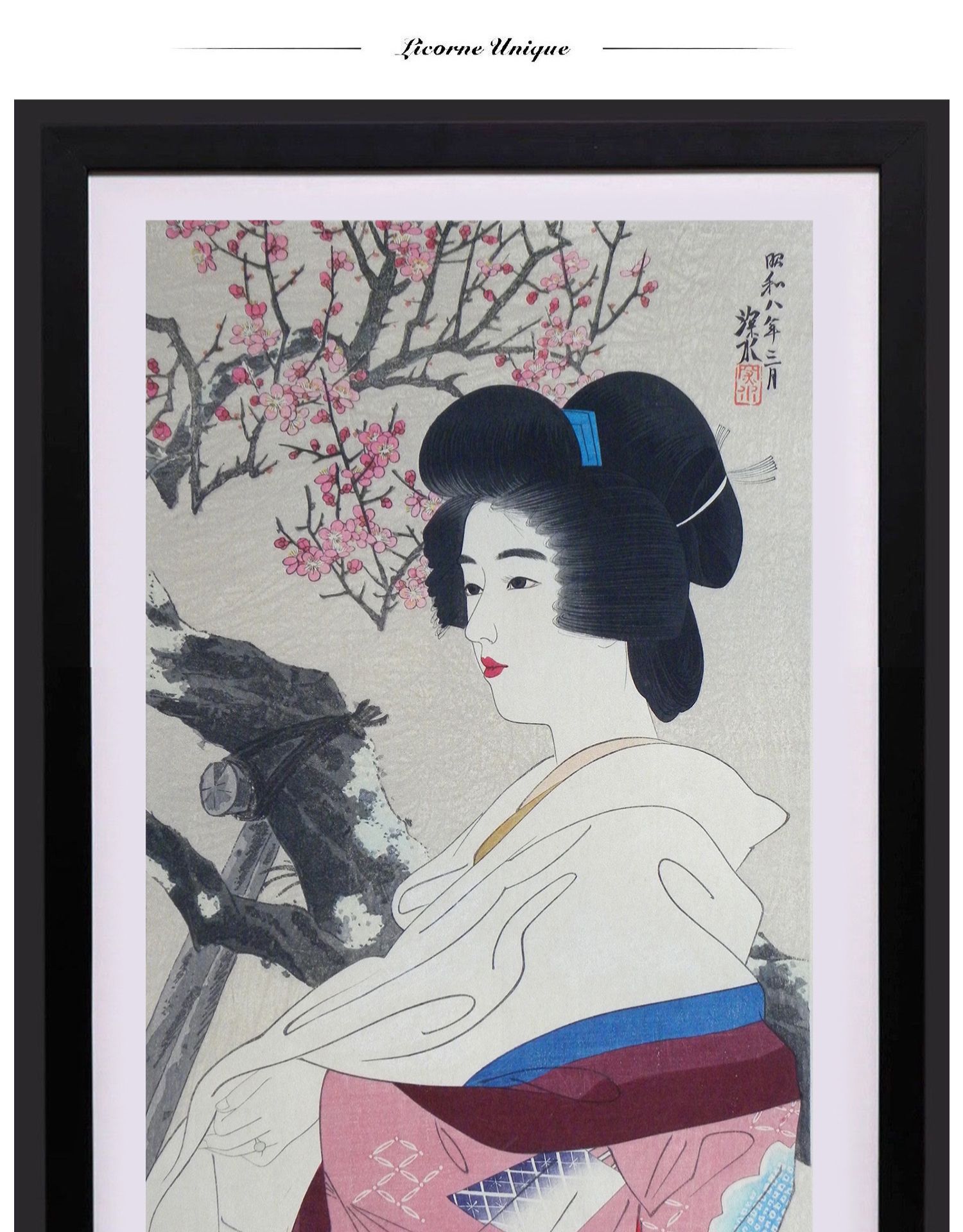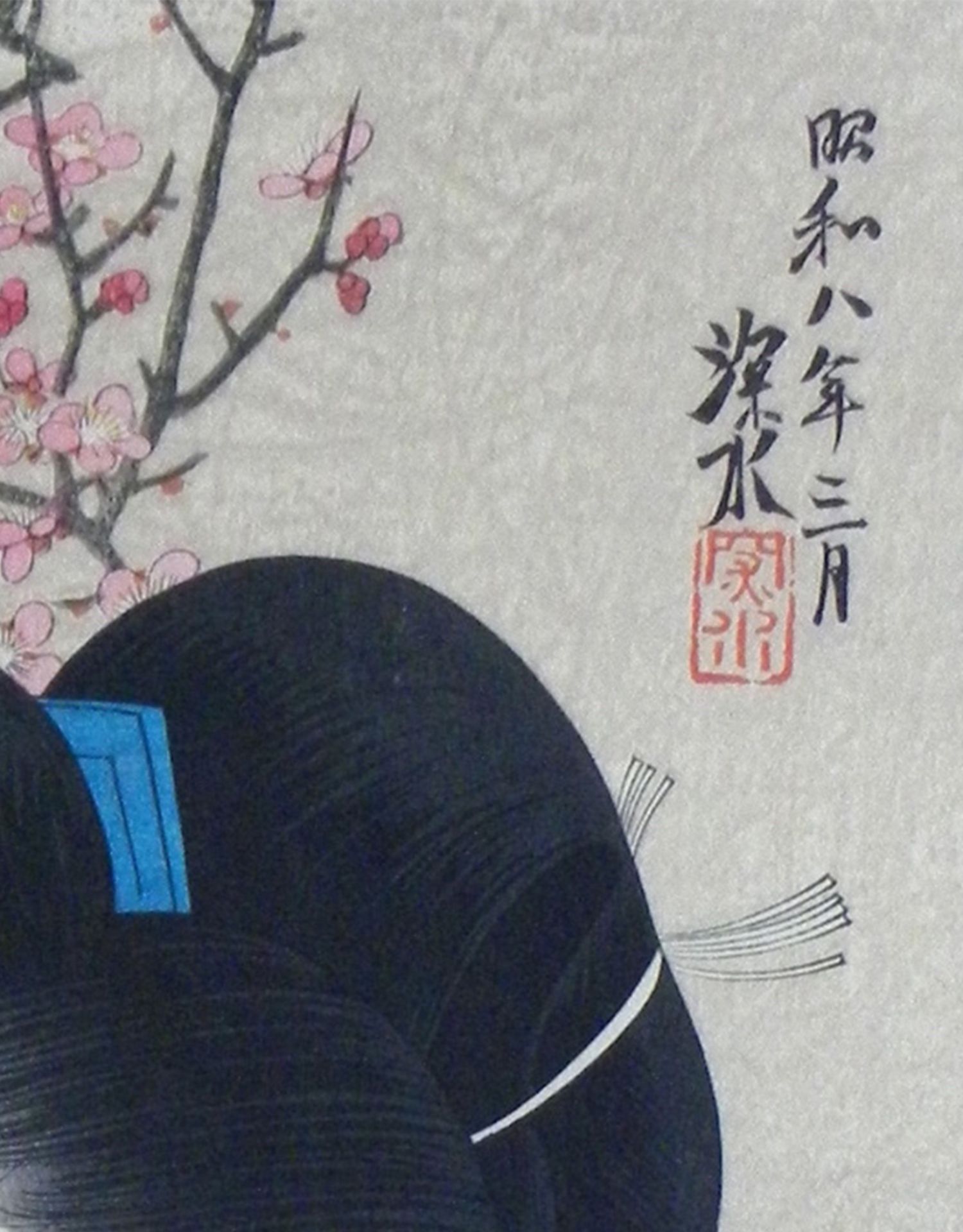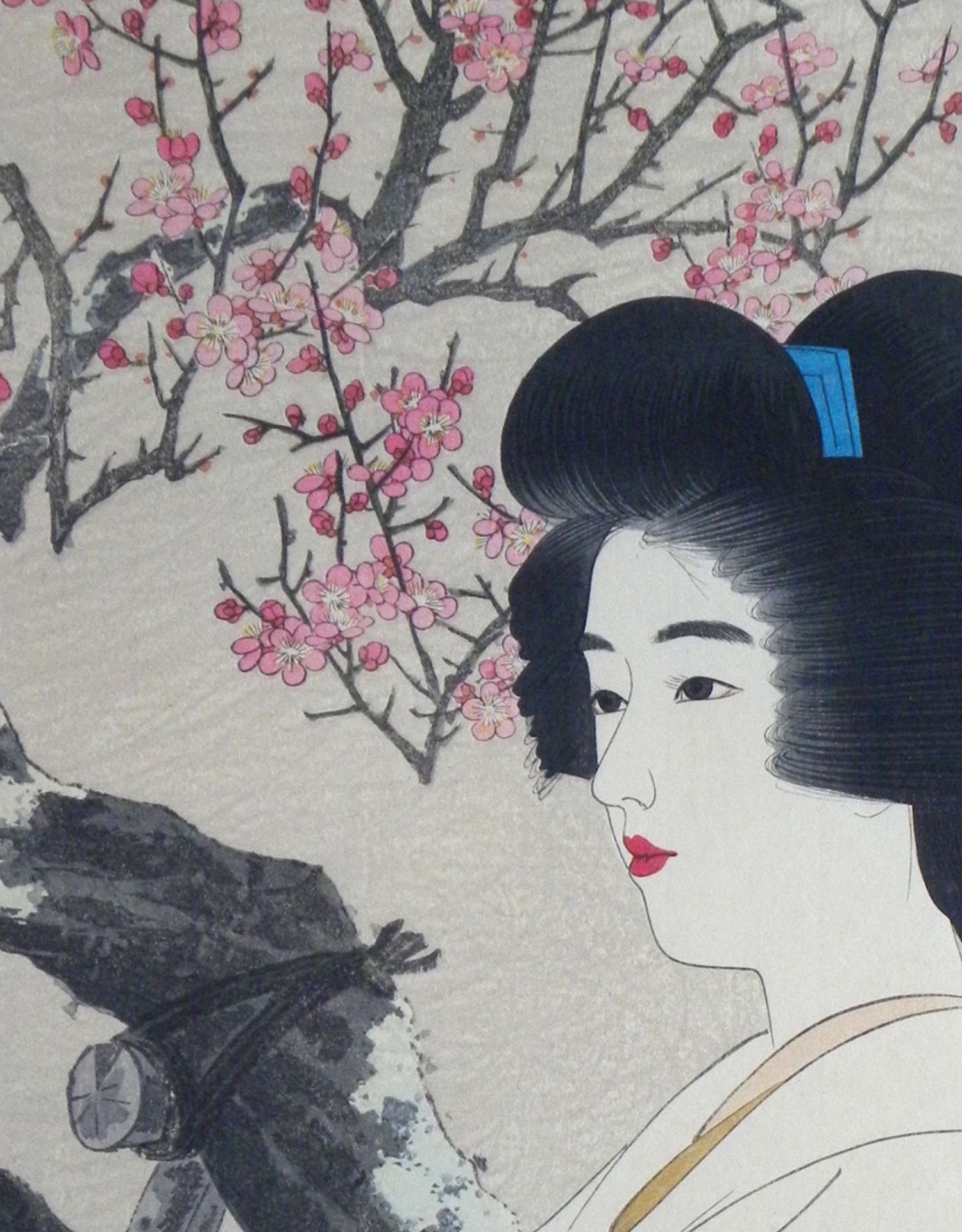 独角鹿西洋古董伊東深水签名限量浮世绘版画现代美人集第二辑红梅