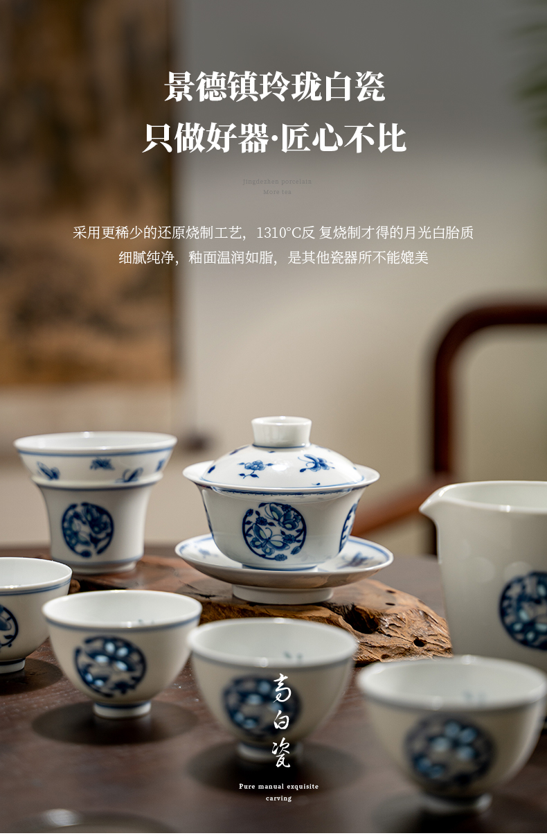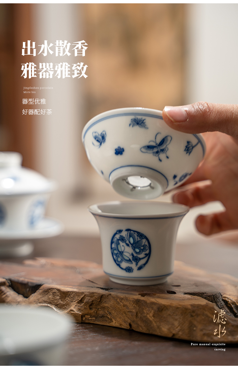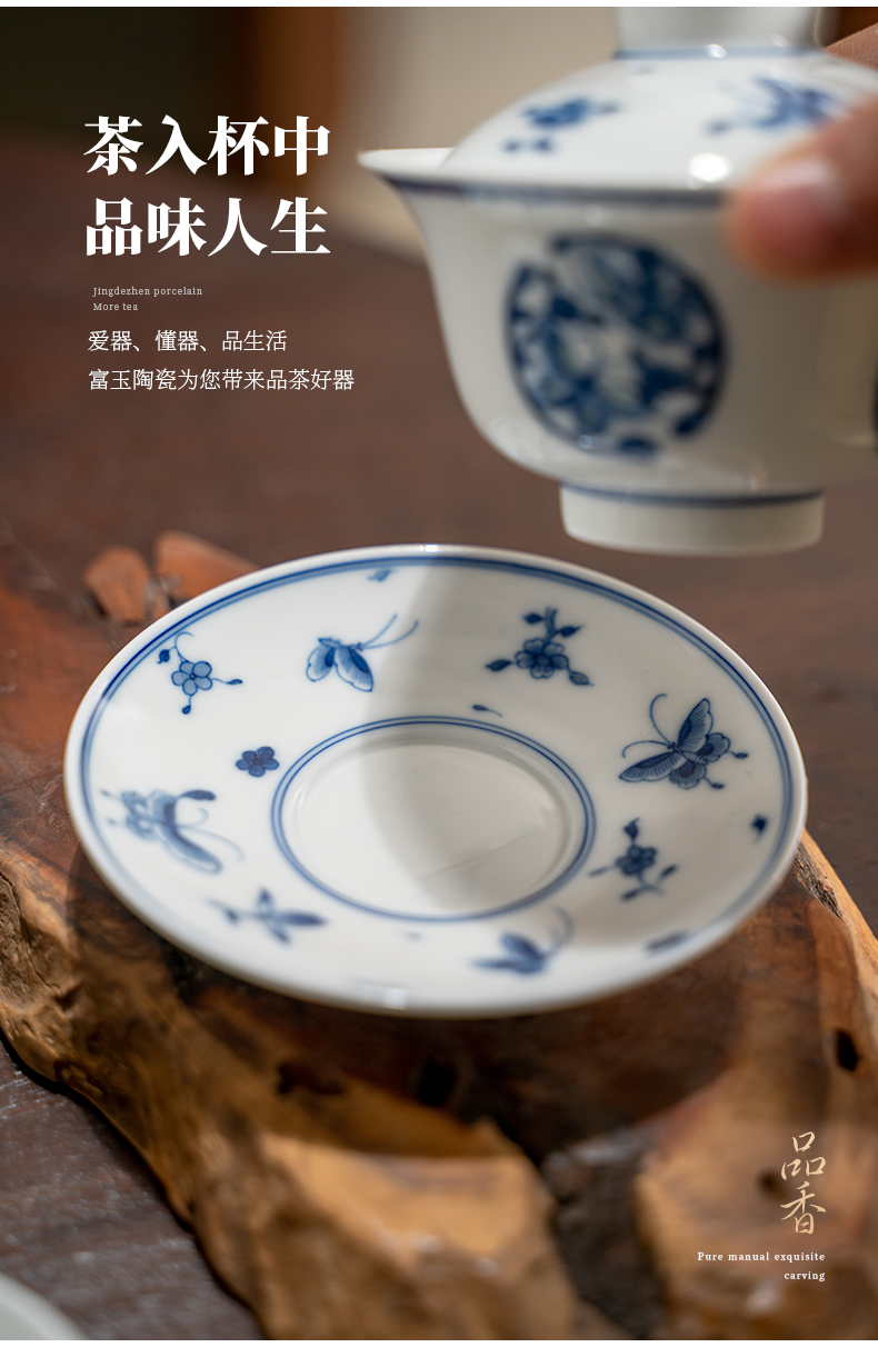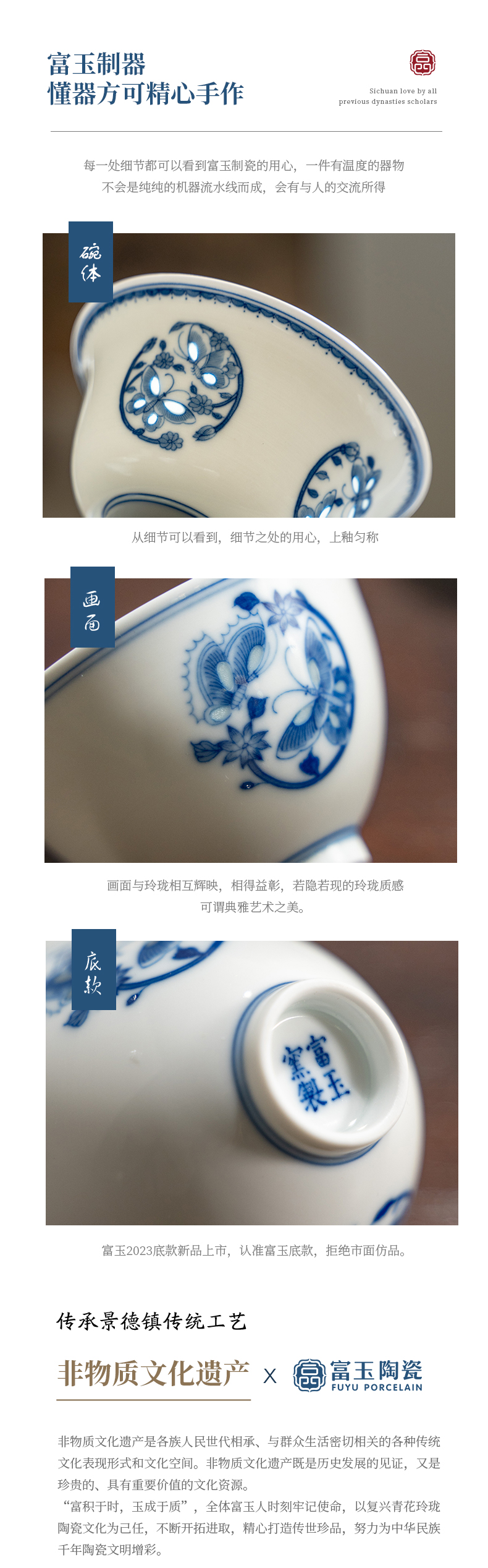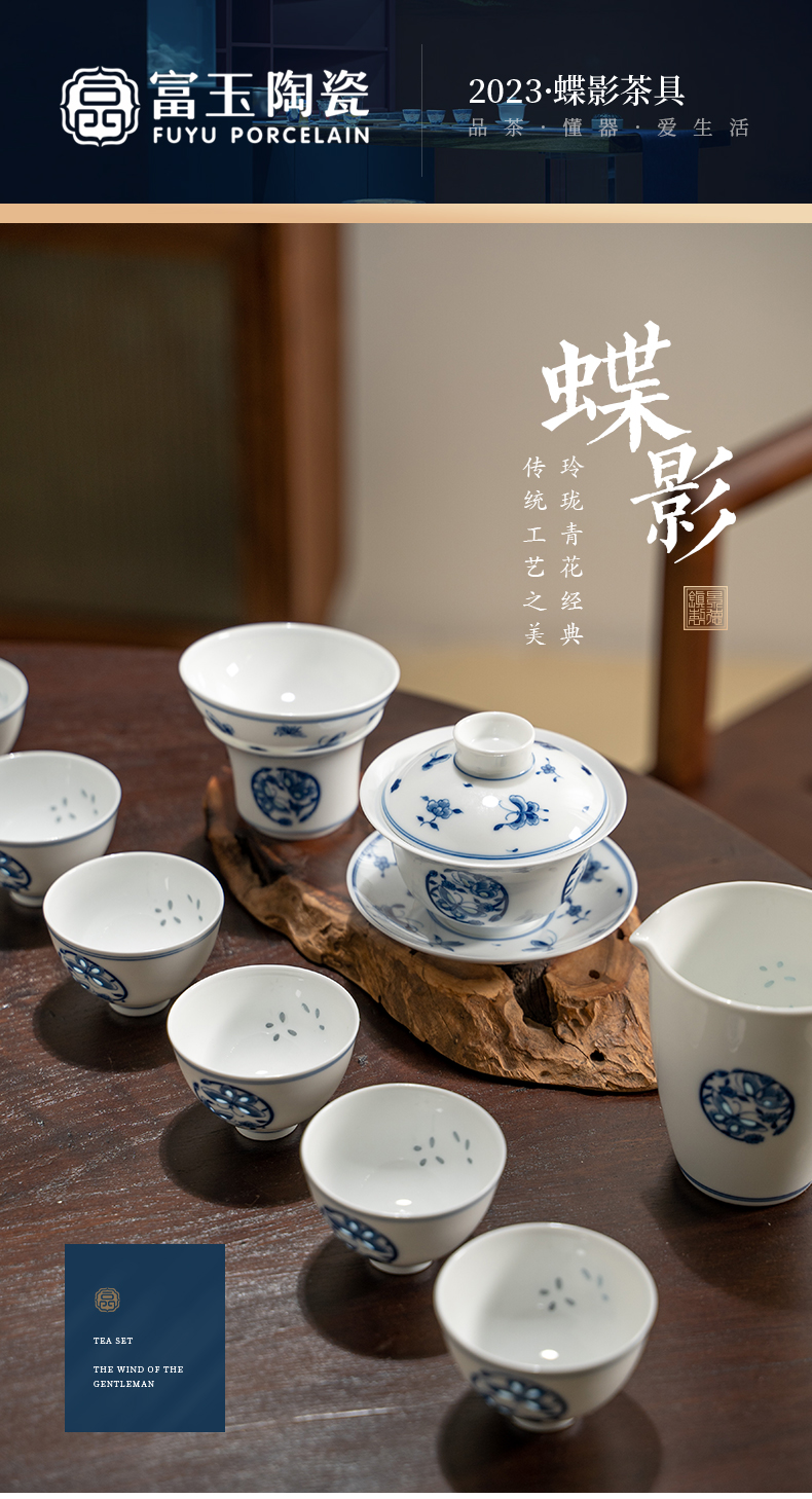富玉 景德镇玲珑瓷 手绘茶具套装陶瓷茶具礼品功夫茶组合盖碗蝶影茶具