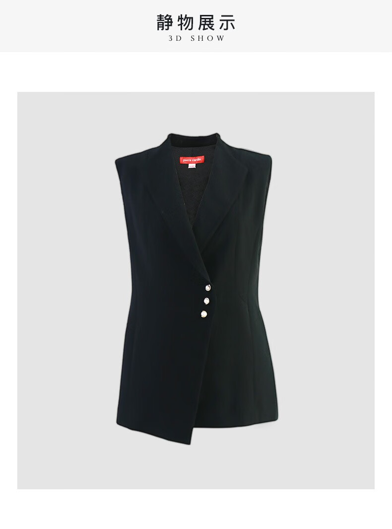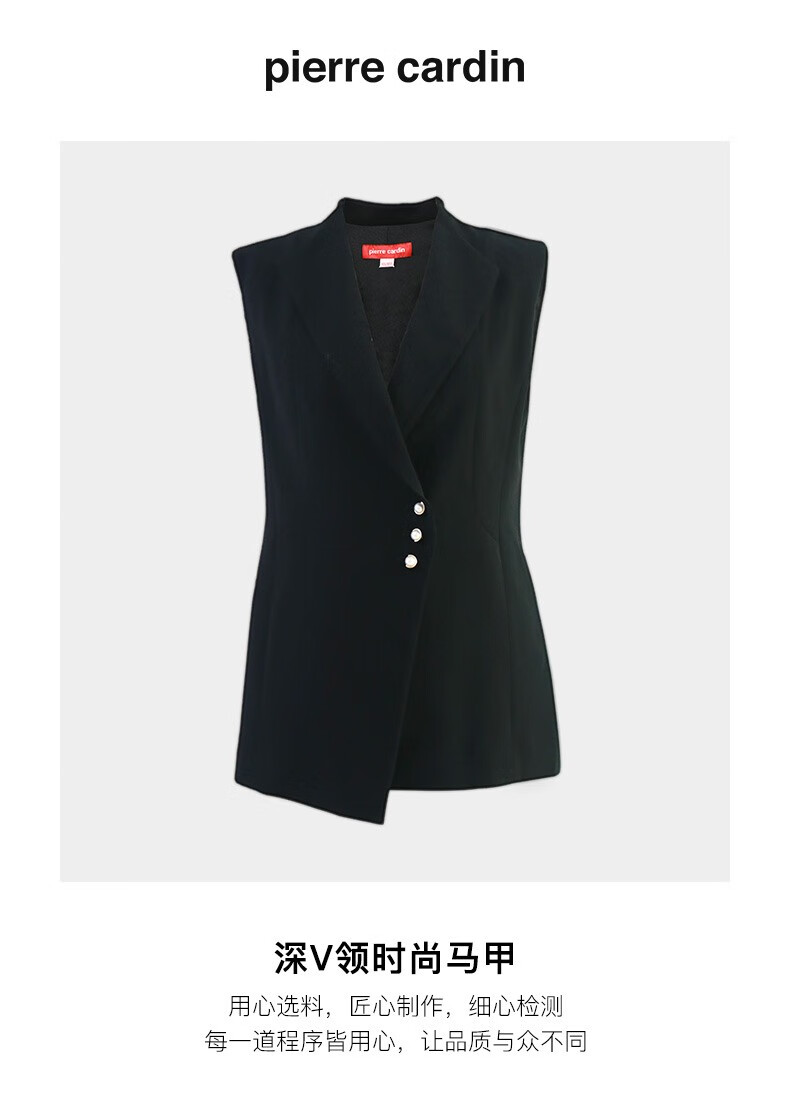 皮尔卡丹女装秋季新款简约通勤干练百搭黑色马甲P84JV62B0