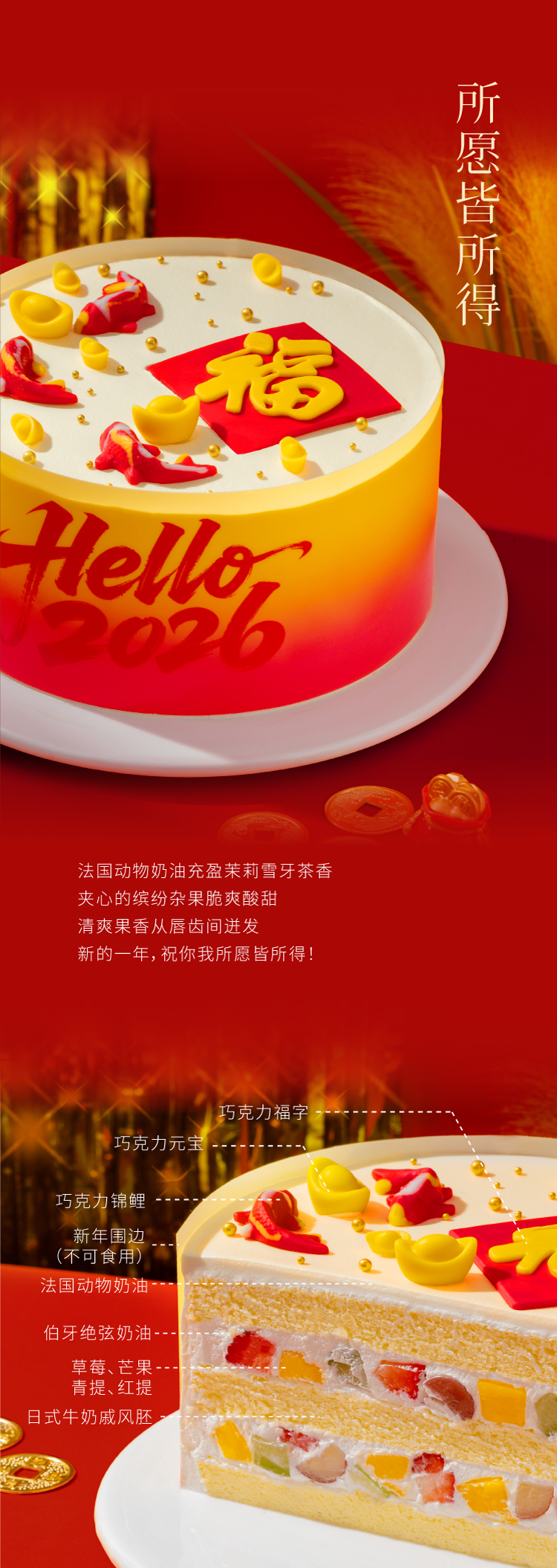 福运锦鲤·伯牙绝弦鲜果奶油蛋糕,可选1.5/2.5/6磅 | 36 CAKE