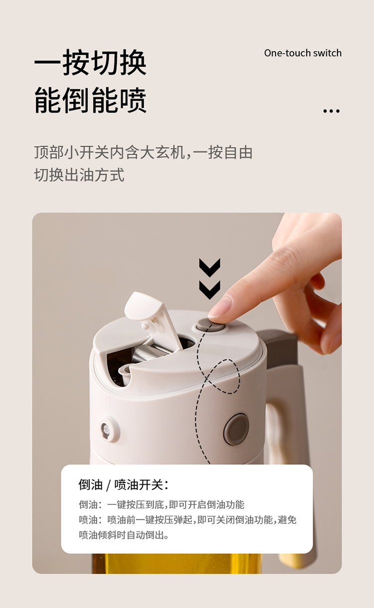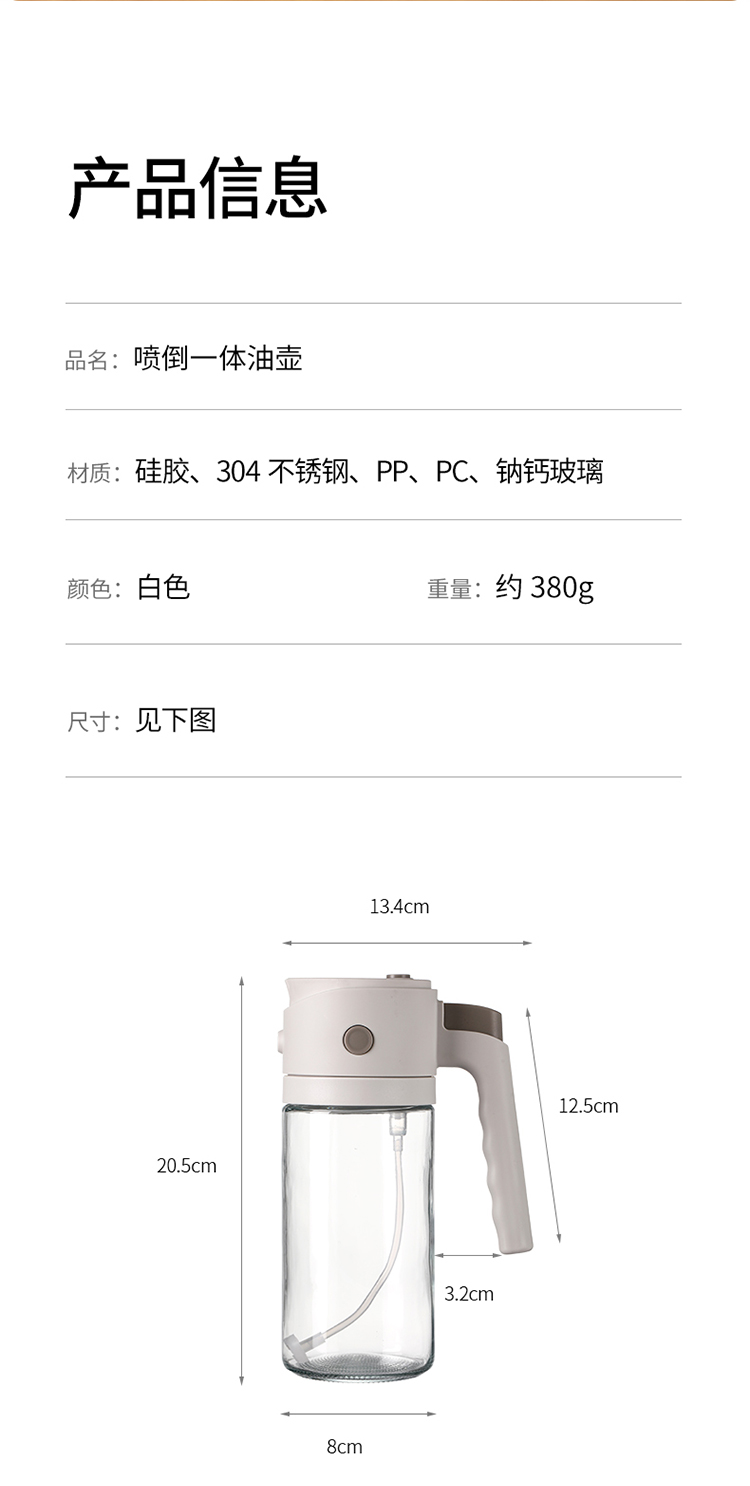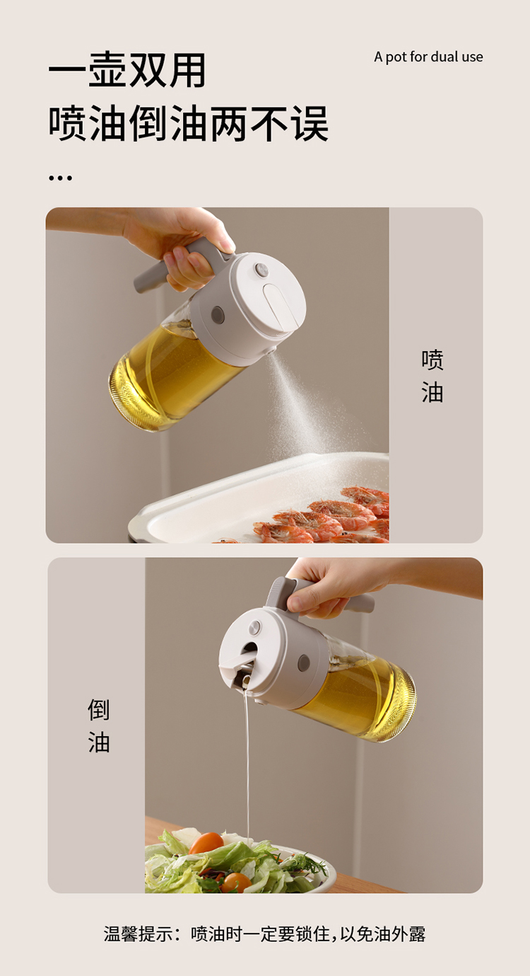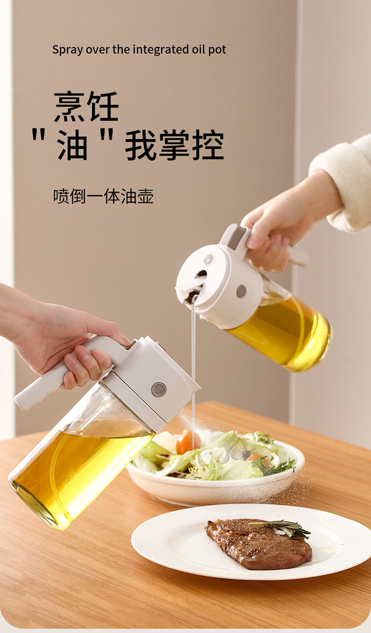 FaSoLa手提式喷油瓶喷油倒油二合一家用厨房玻璃喷油壶单手调油随心烹调550ML