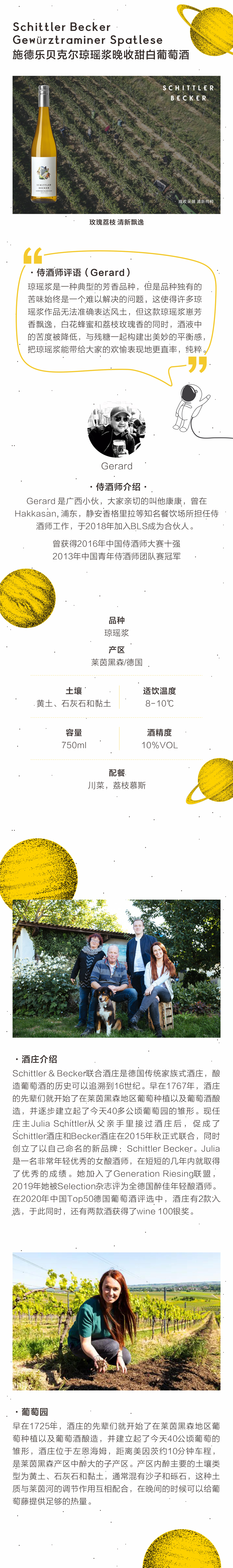 【荔枝蜜桃香】德国施德乐贝克尔琼瑶浆晚收甜白葡萄酒 2022 Schittler Becker Gewürztraminer Spatlese
