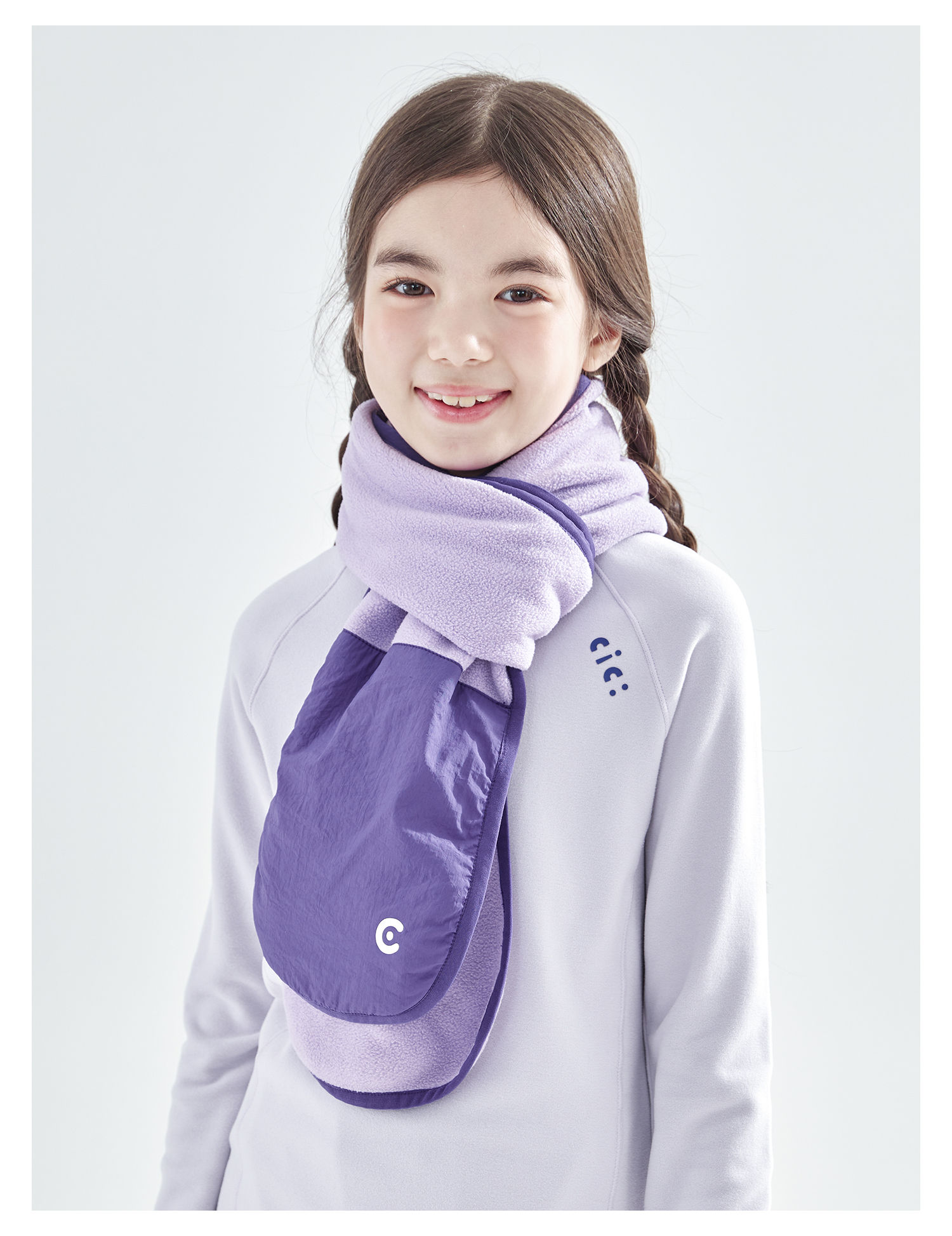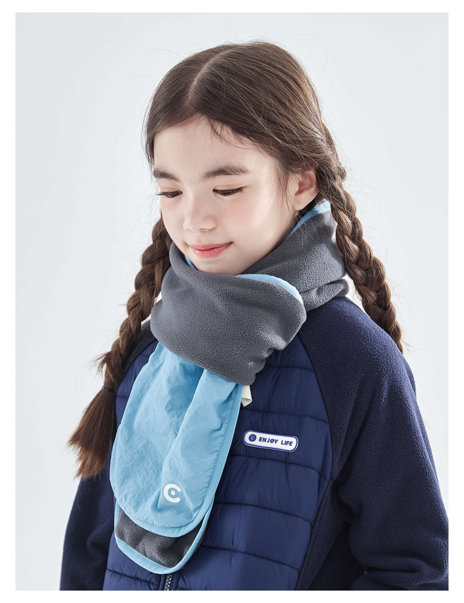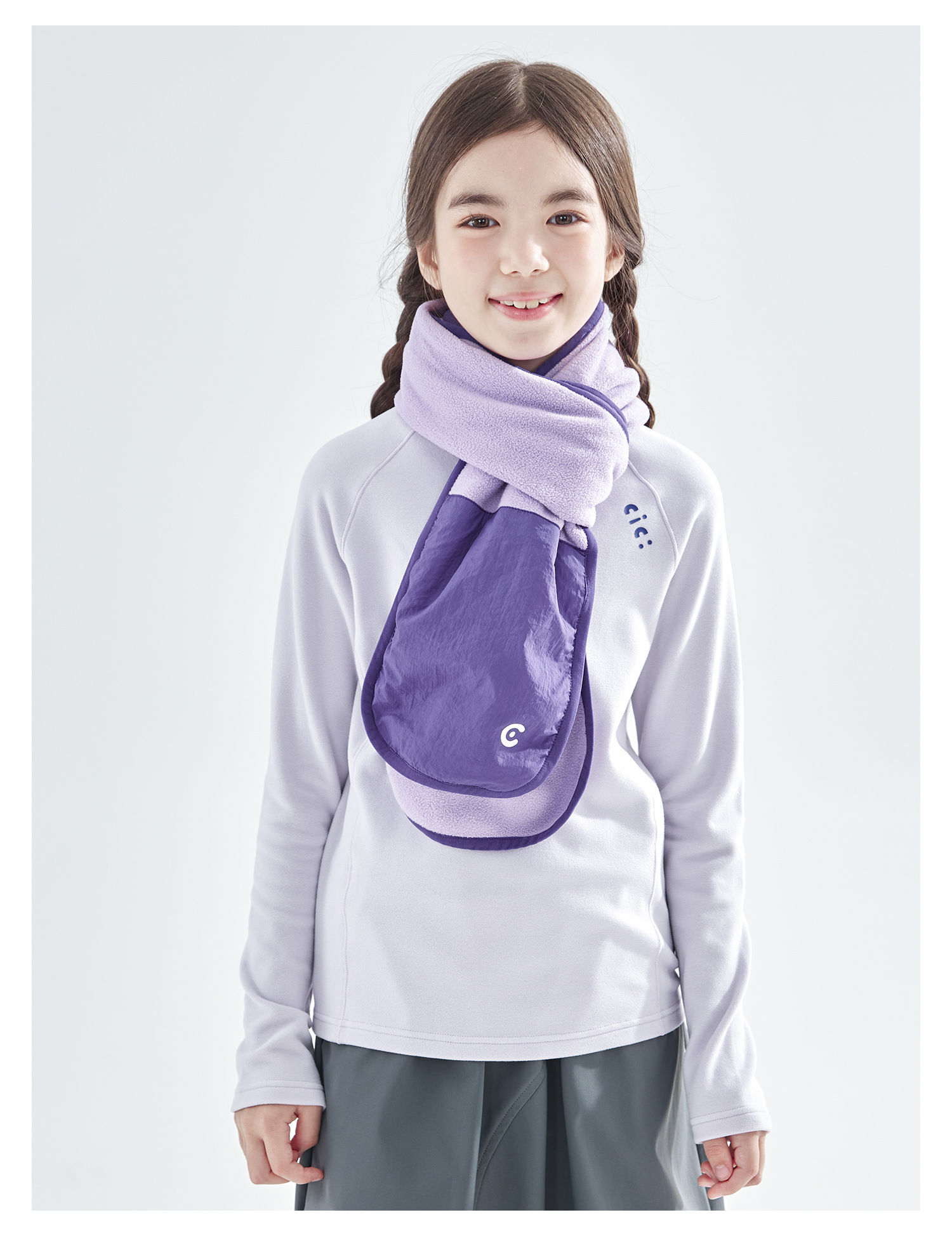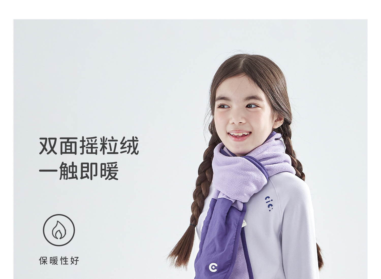 cicochild25年冬季新款亲子中大童抗静电纯色围脖摇粒绒保暖围巾