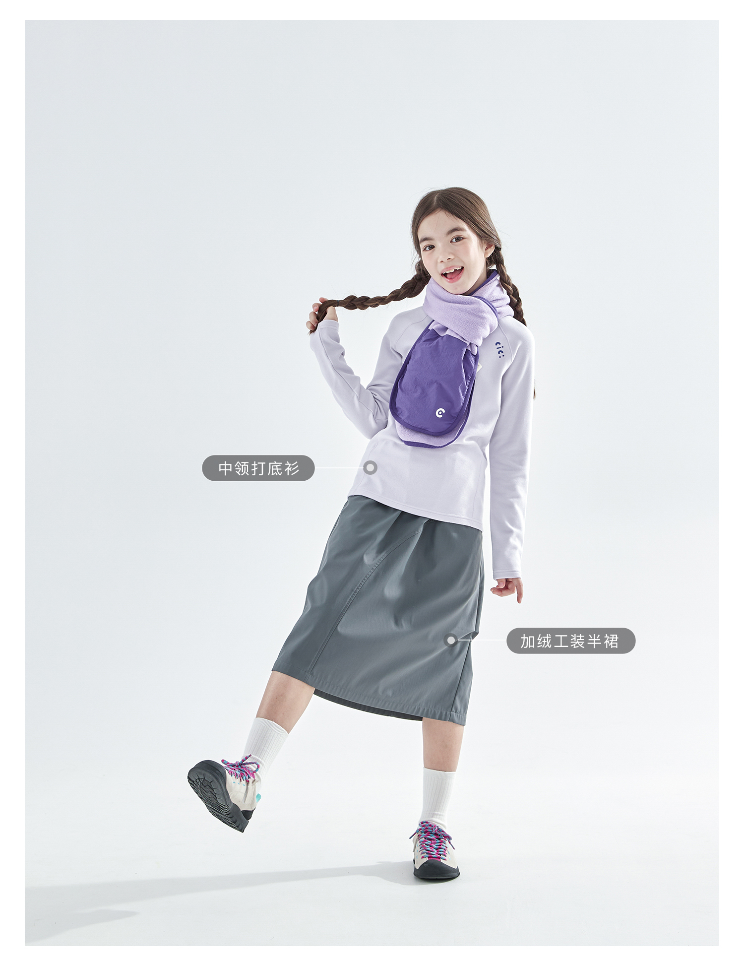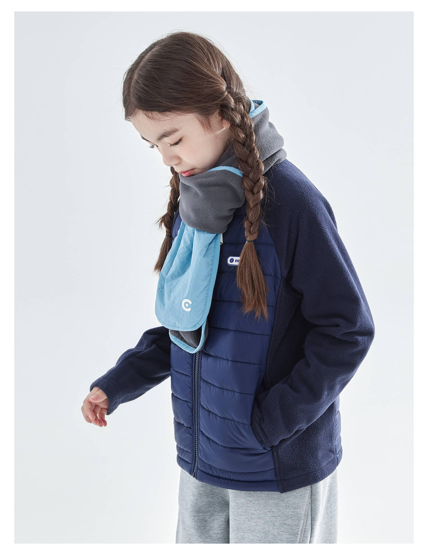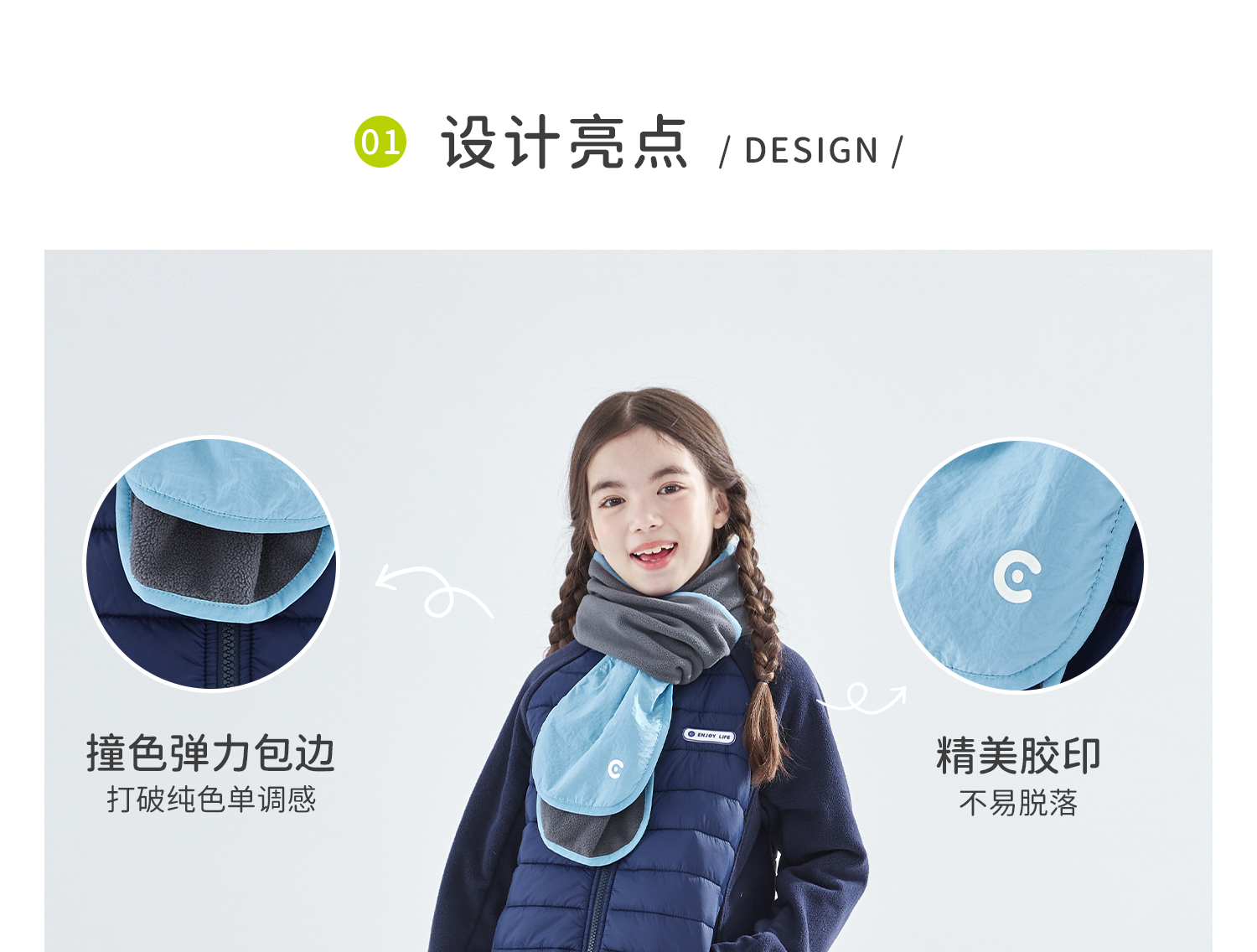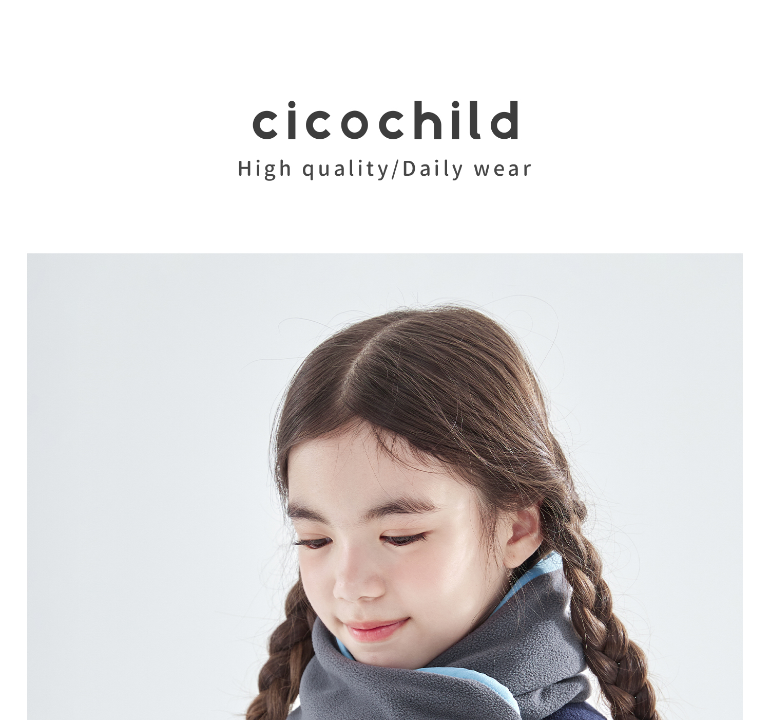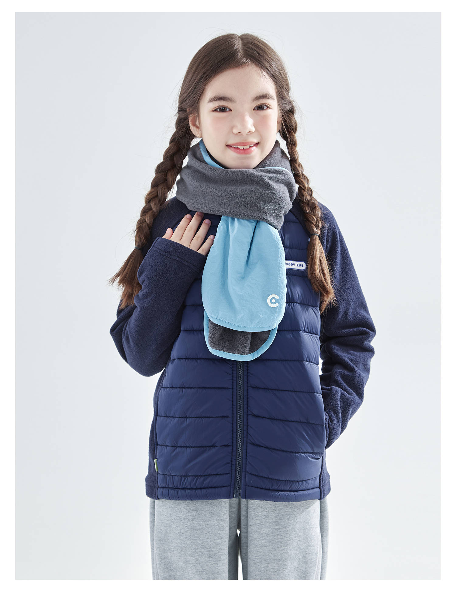 cicochild25年冬季新款亲子中大童抗静电纯色围脖摇粒绒保暖围巾