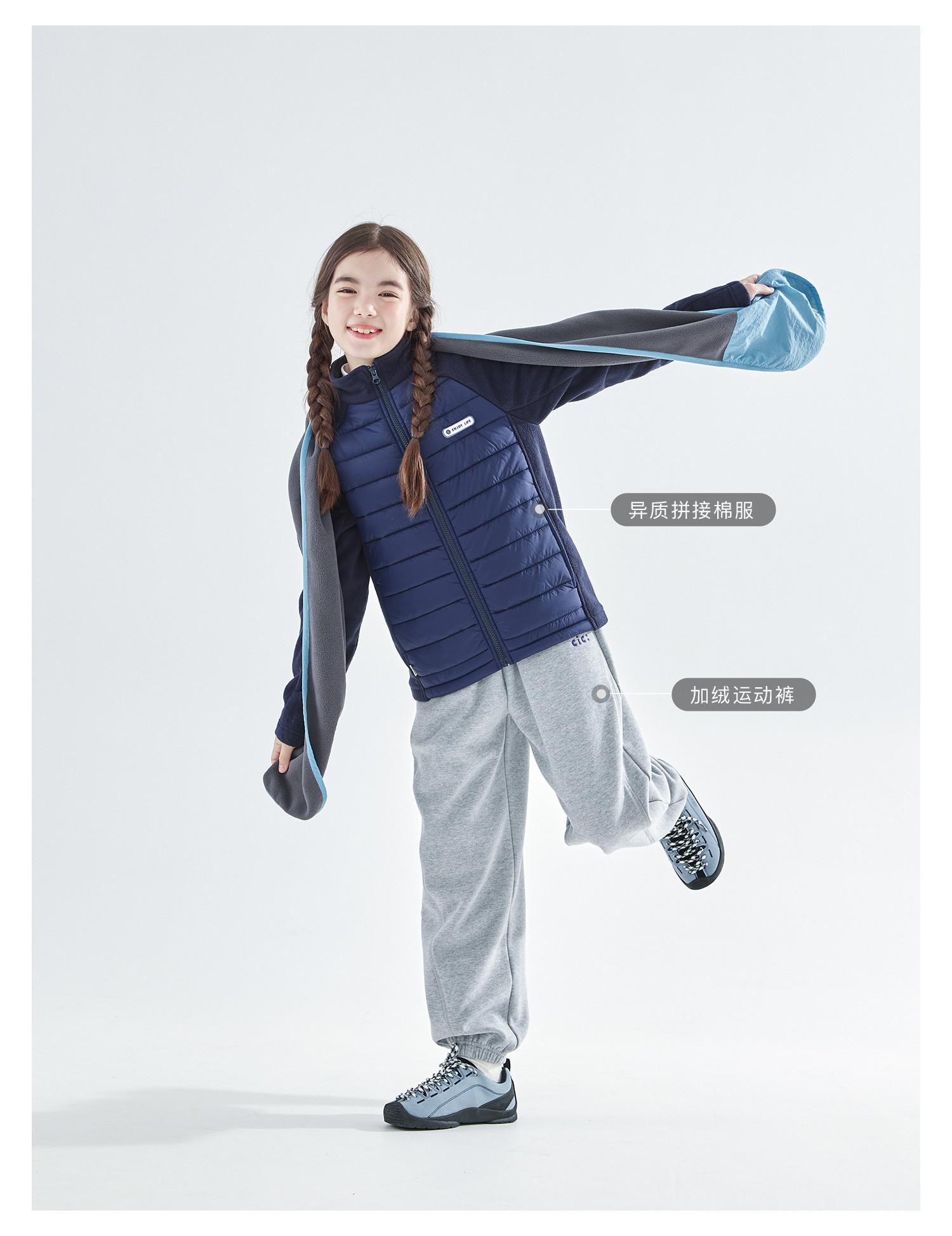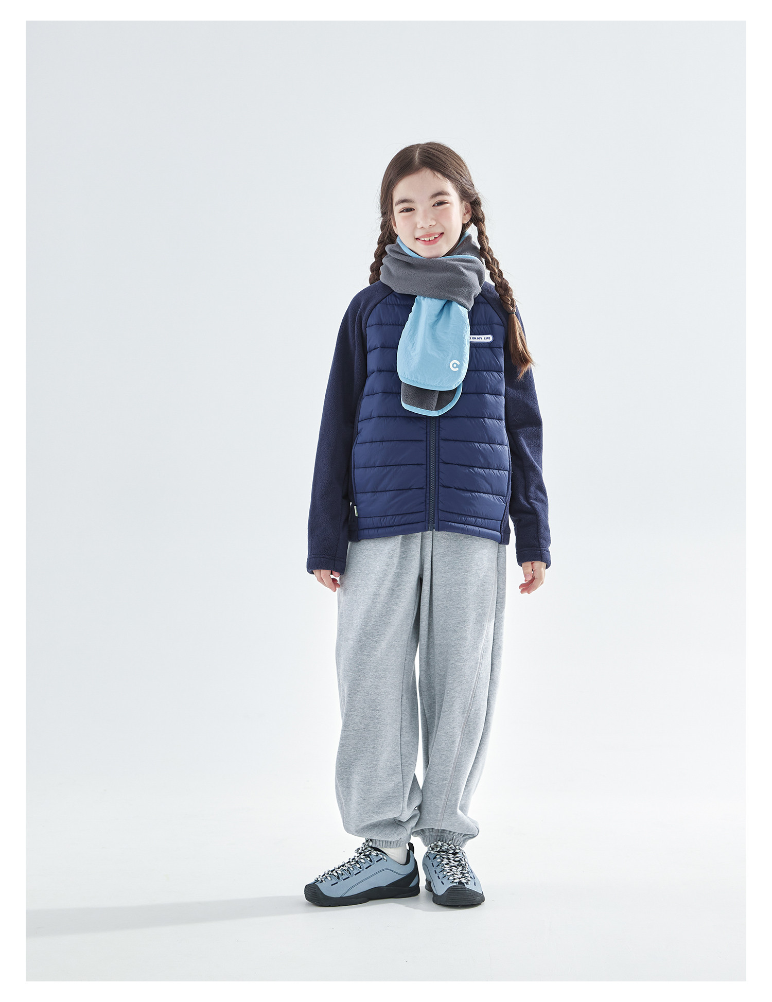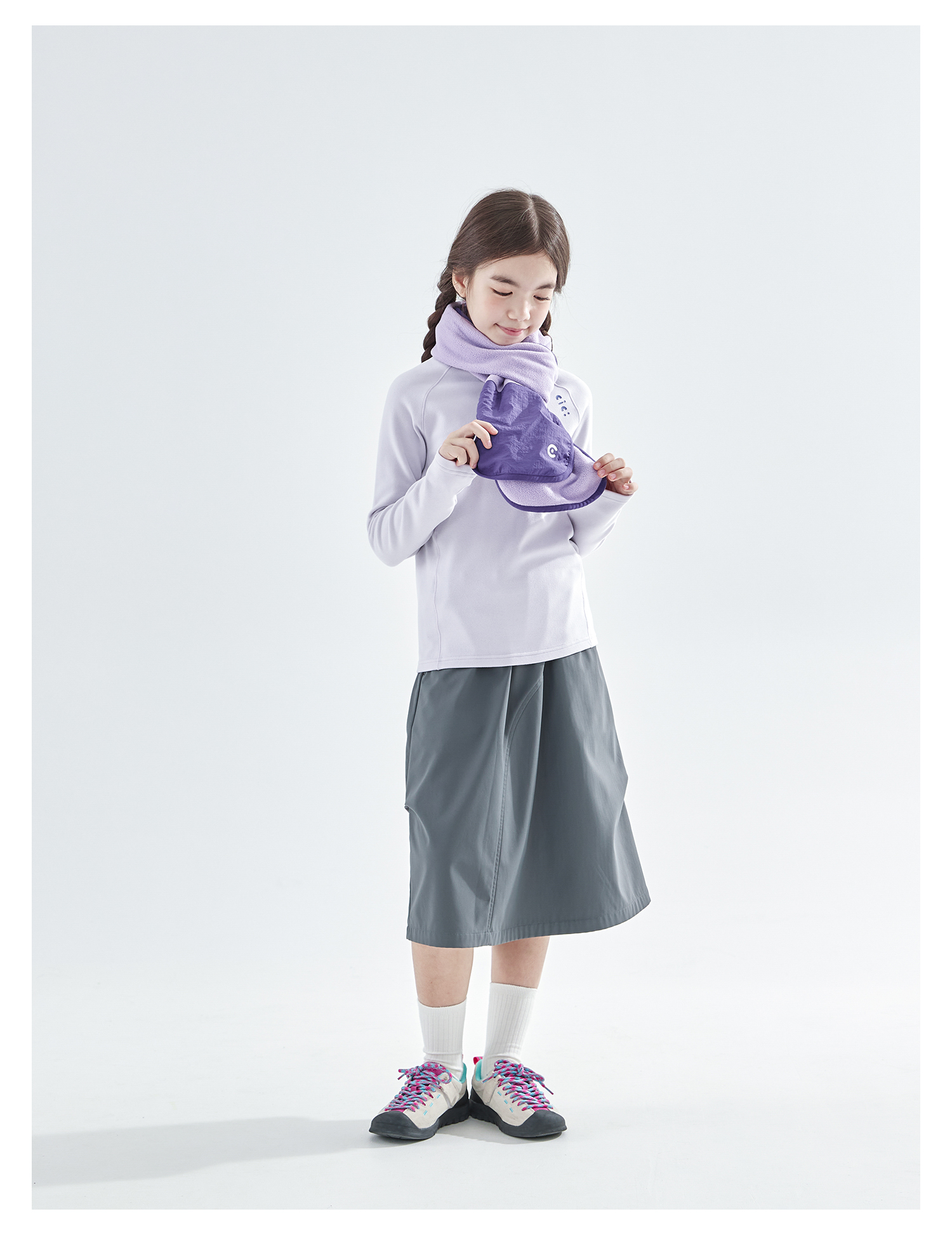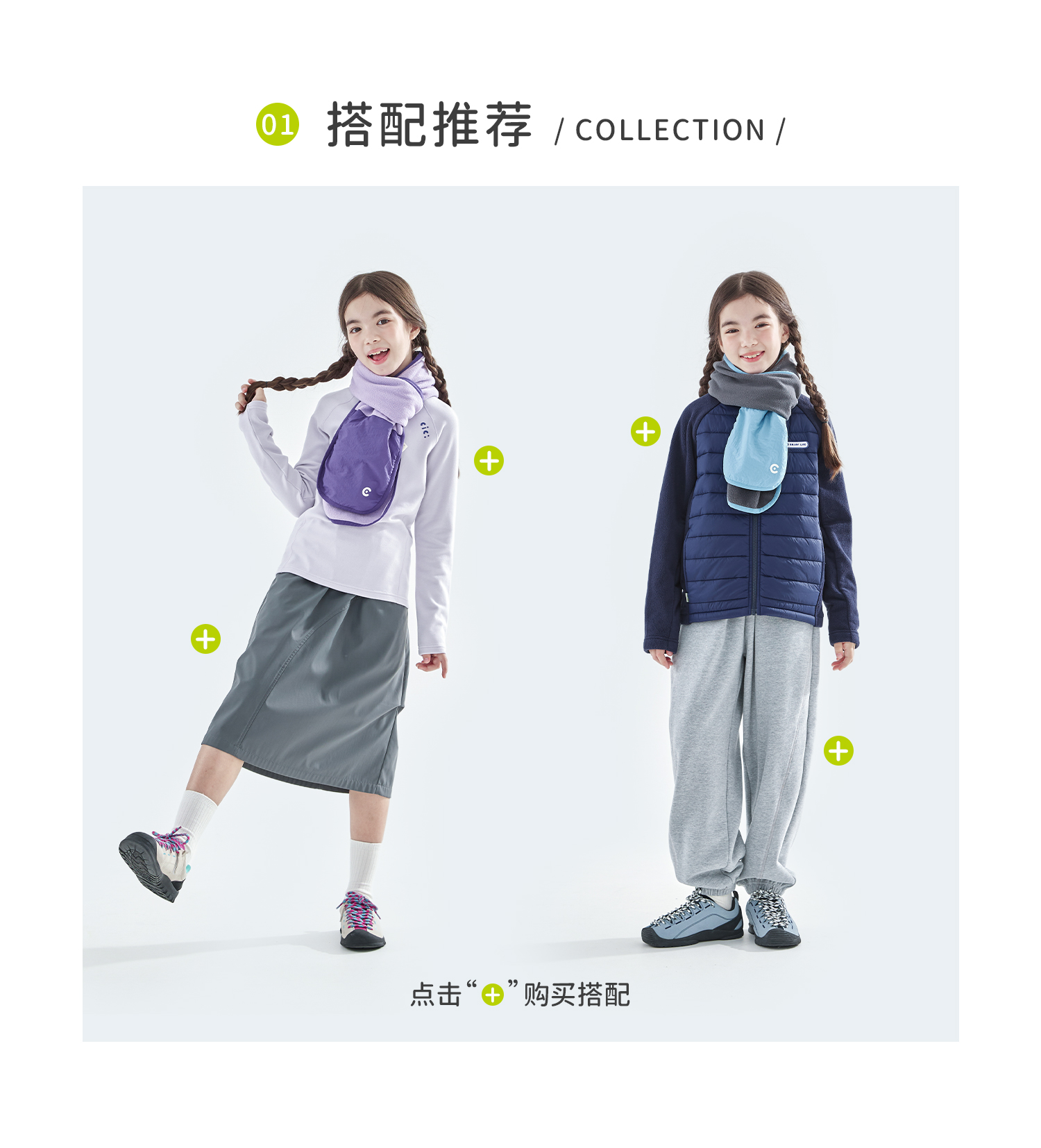 cicochild25年冬季新款亲子中大童抗静电纯色围脖摇粒绒保暖围巾