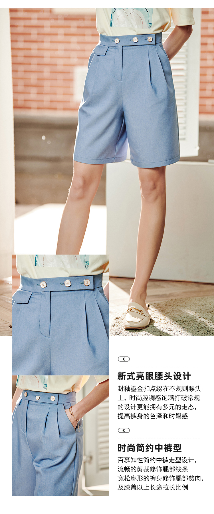欧芮儿高腰显瘦短裤女宽松2021新款夏季直筒阔腿休闲百搭简约时尚