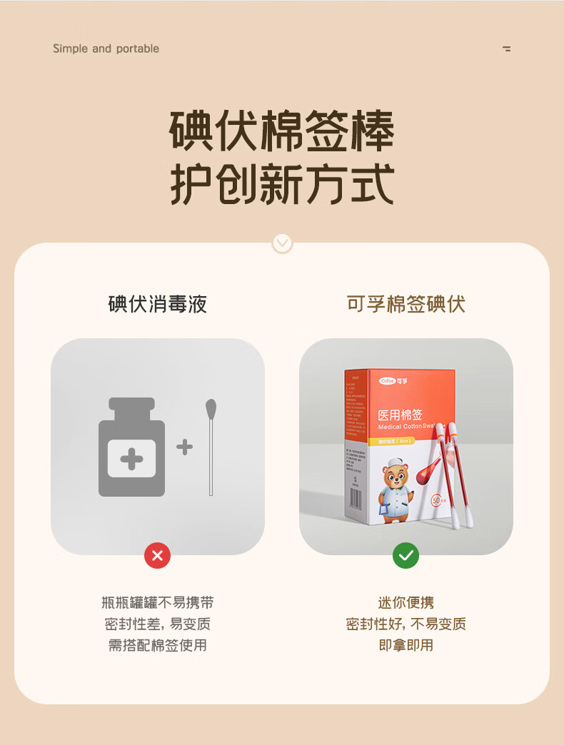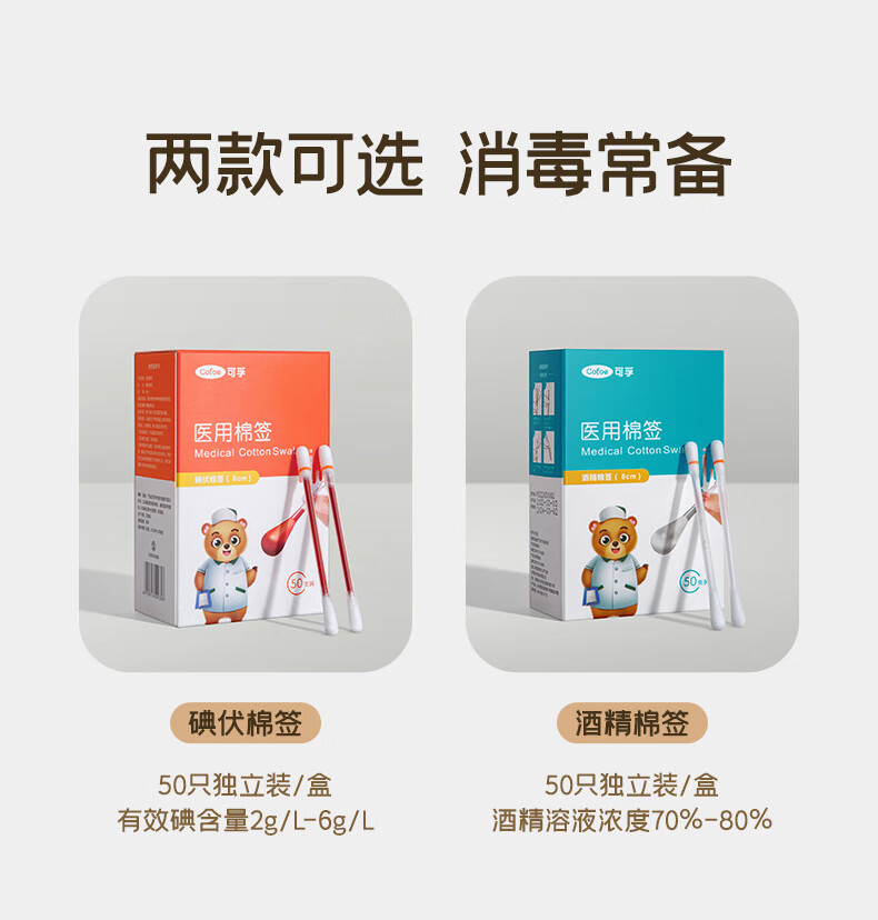 【ZY25】可孚医用棉签100支/盒
