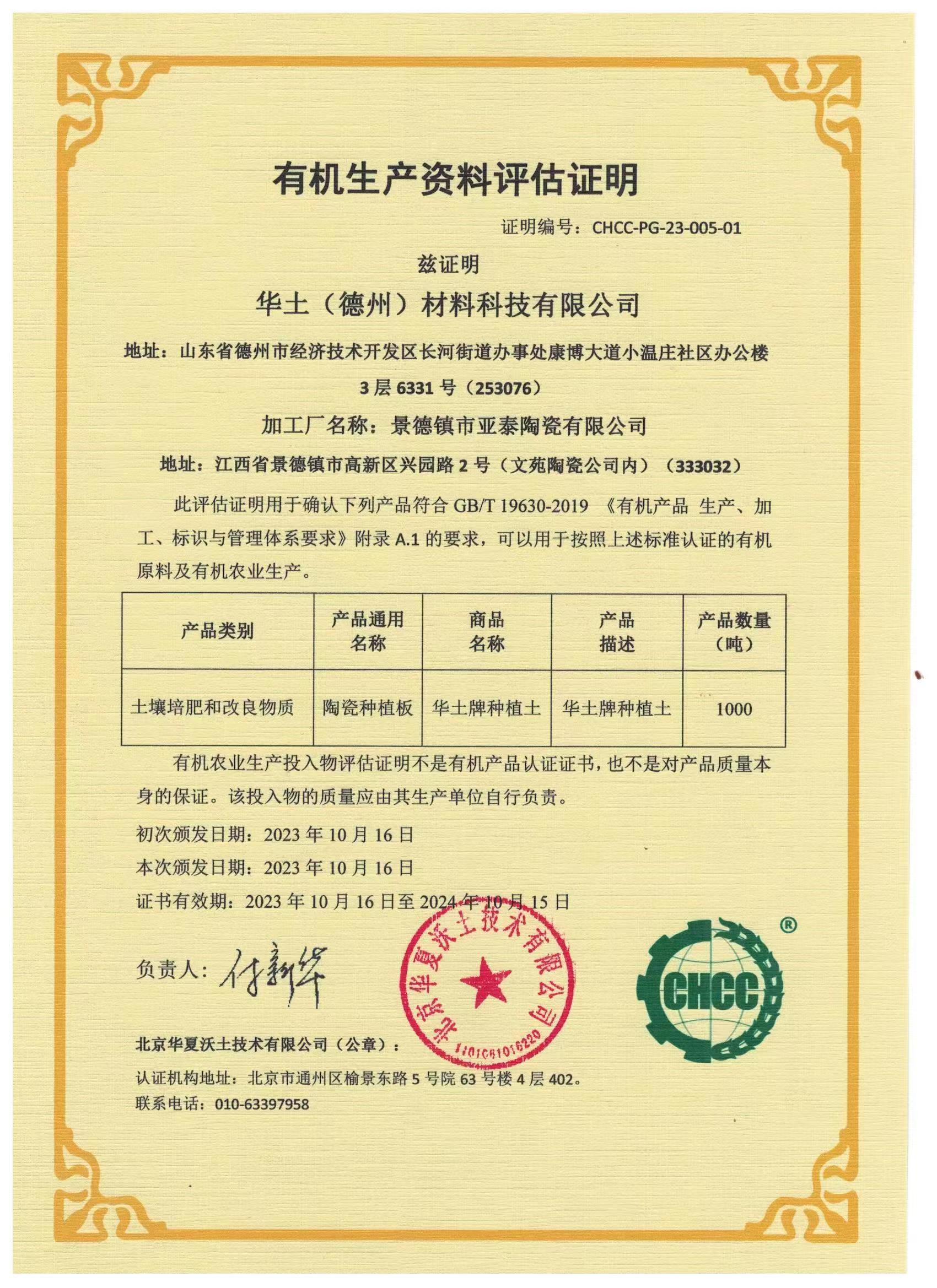 华土原料的有机认证