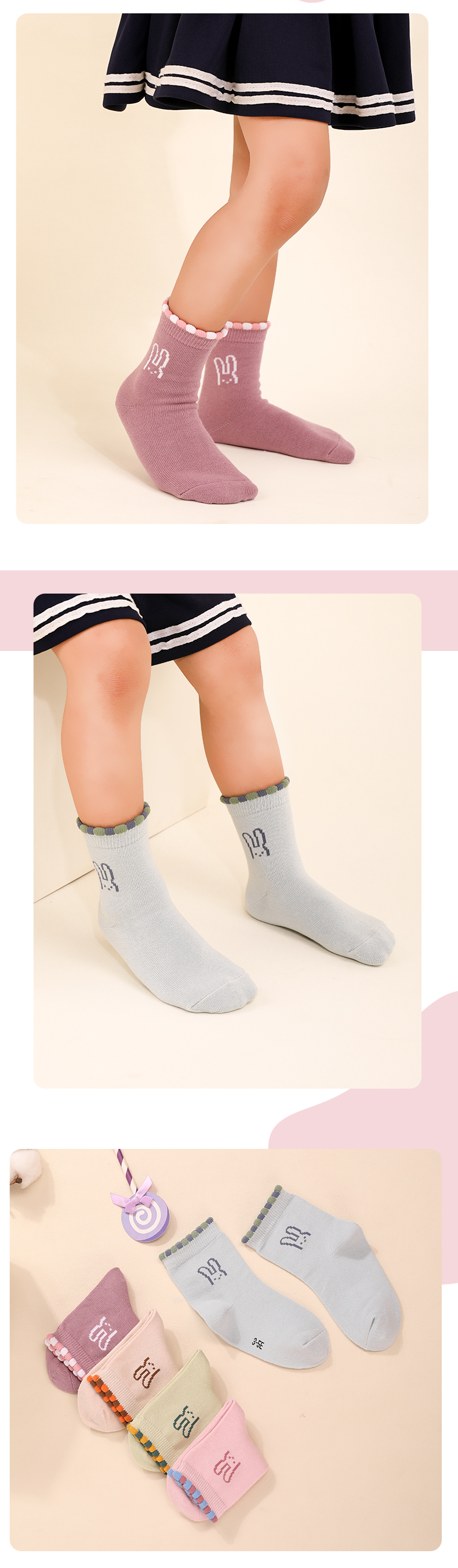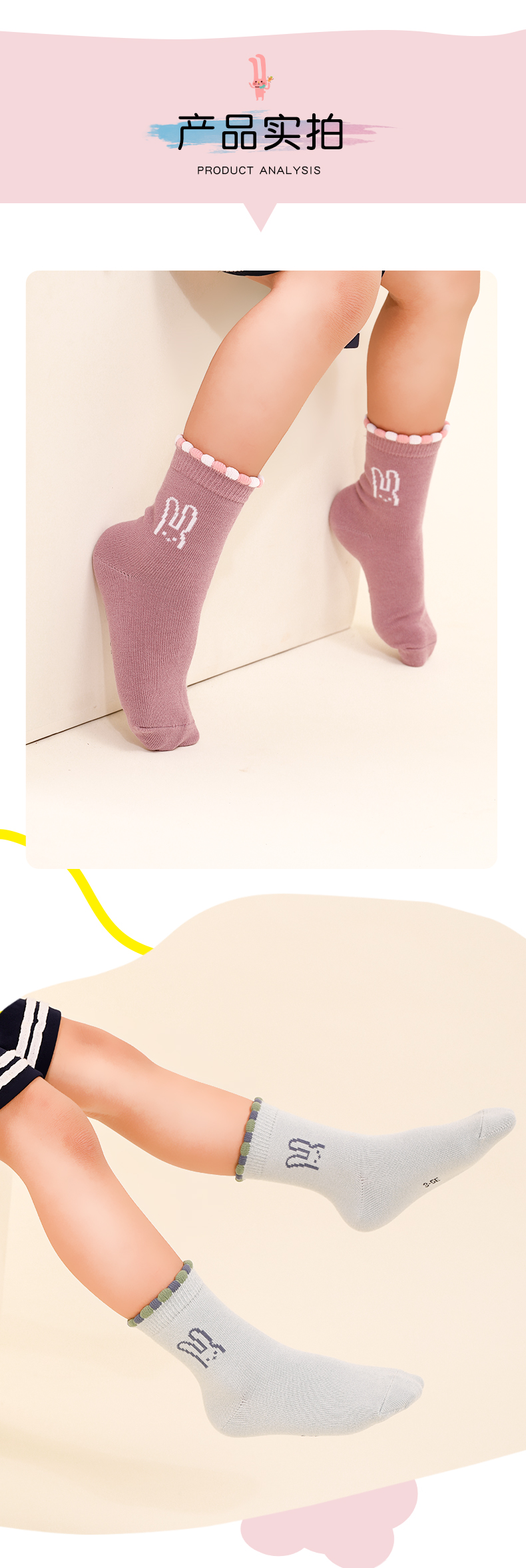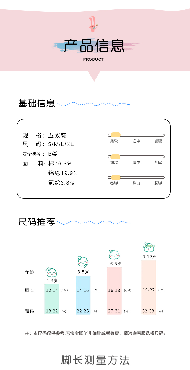 洁丽雅5双装童袜中筒袜子儿童袜新疆棉可爱印花亲肤柔软袜子小孩