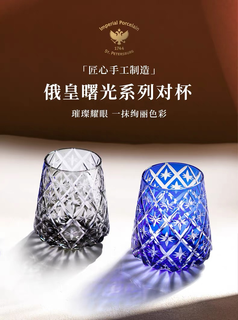俄皇LOMONOSOV水晶曙光系列玻璃酒杯轻奢高档威士忌酒杯酒具礼盒