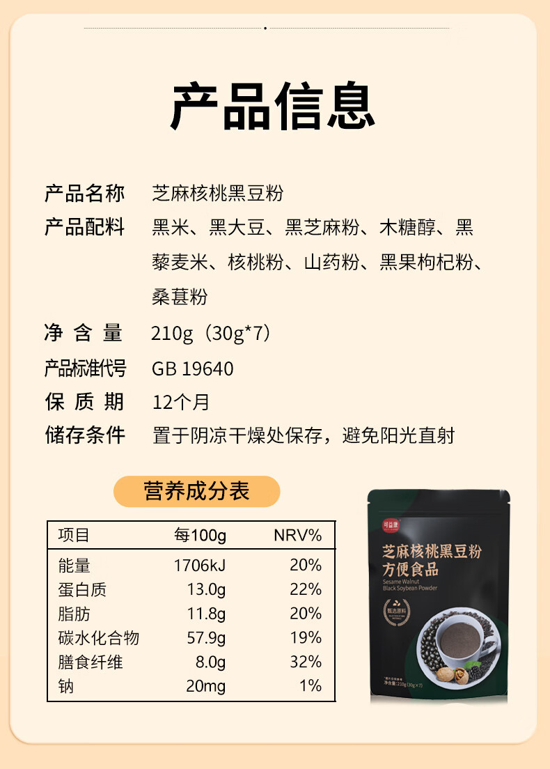 可益康芝麻核桃黑豆粉210g(30g*7条/袋)