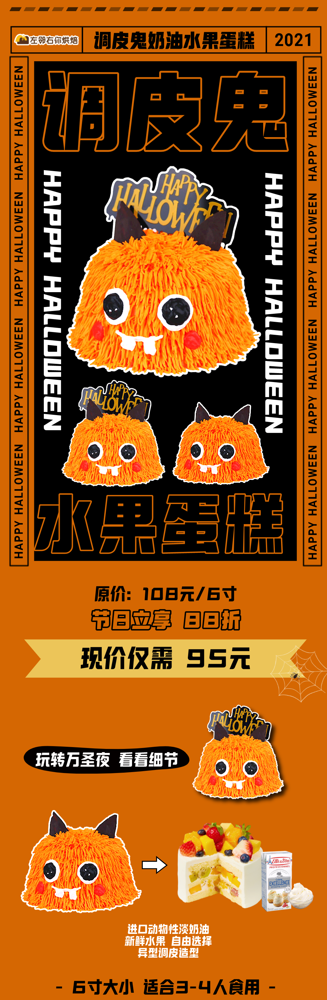 【下架勿动】2023万圣节·调皮鬼鬼咸蛋黄口味蛋糕(可另选黑芝麻口味与新鲜水果)| 开万圣趴必备 Helloween 调皮鬼奶油水果蛋糕 有趣异型奶油蛋糕