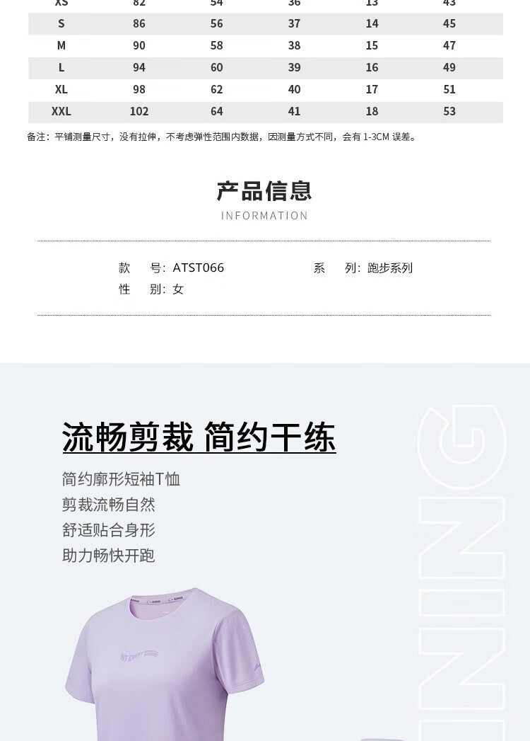 李宁女短袖T恤ATST066-4