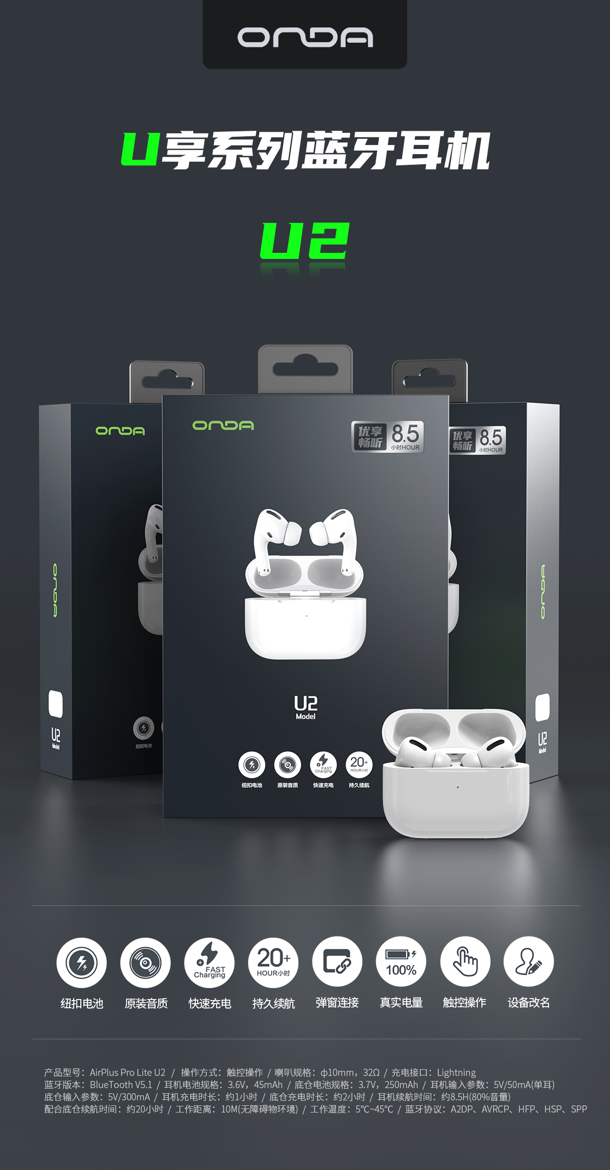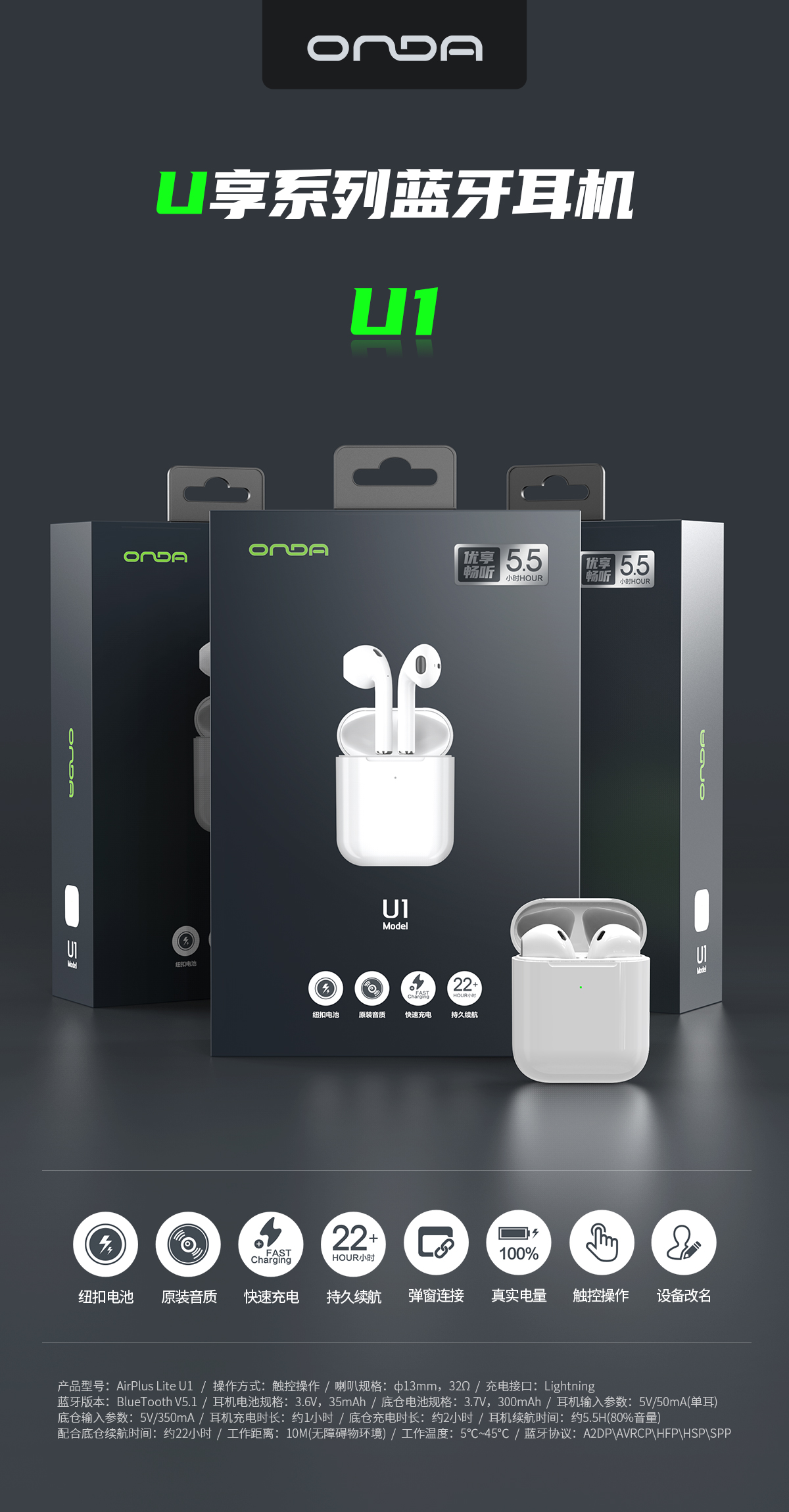 昂达TWS无线蓝牙耳机