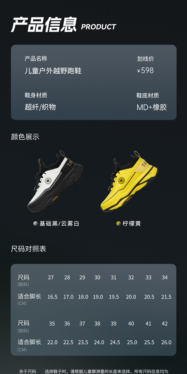 【稳跑少年团】泰兰尼斯kids儿童户外越野跑鞋男童防滑徒步登山鞋女童运动鞋子 T01D5C7385
