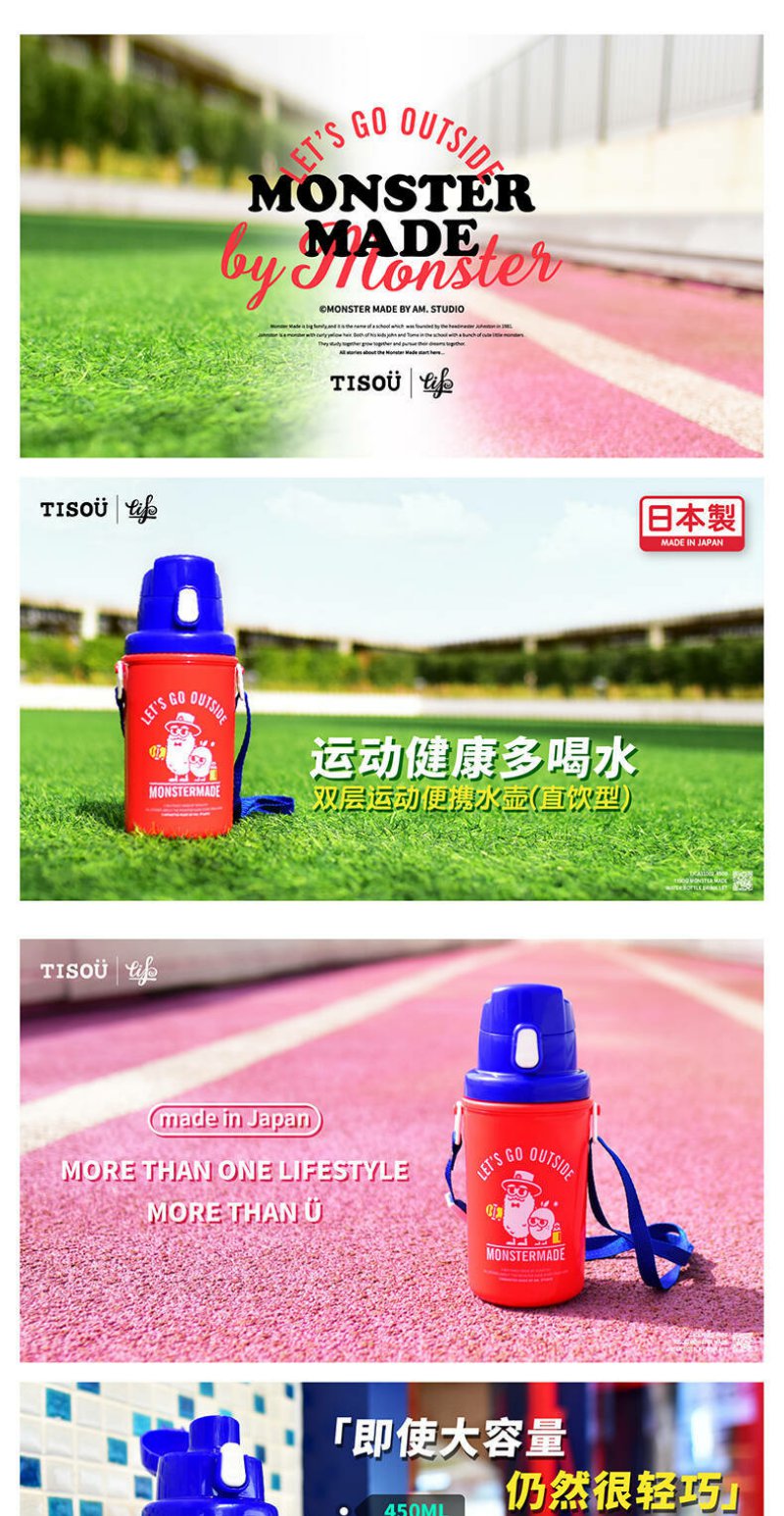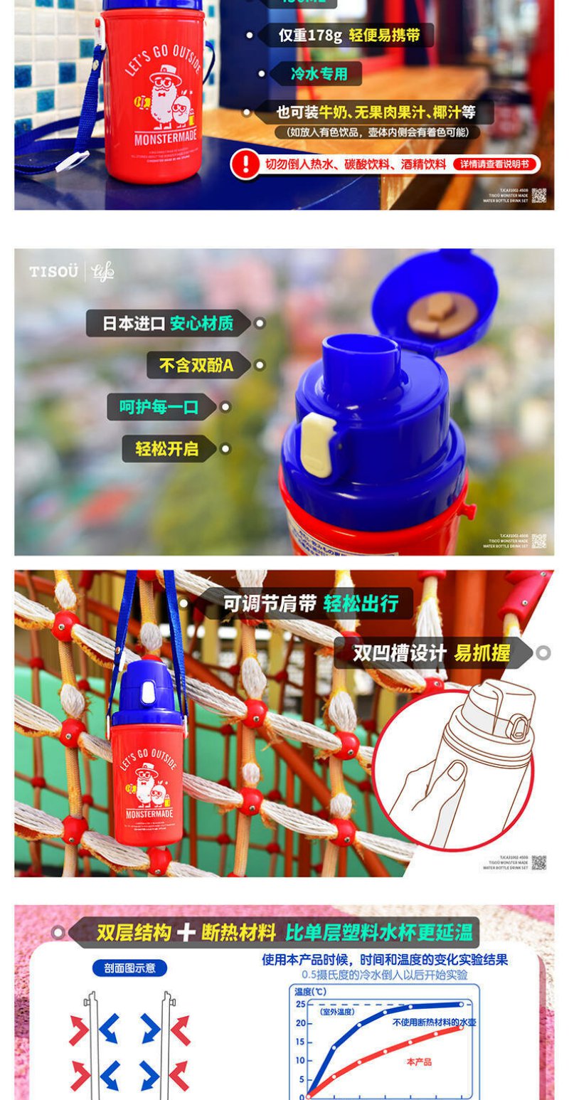 日本进TISOU爱婴小铺儿童学饮杯直饮水壶便携(保冷型)450ml