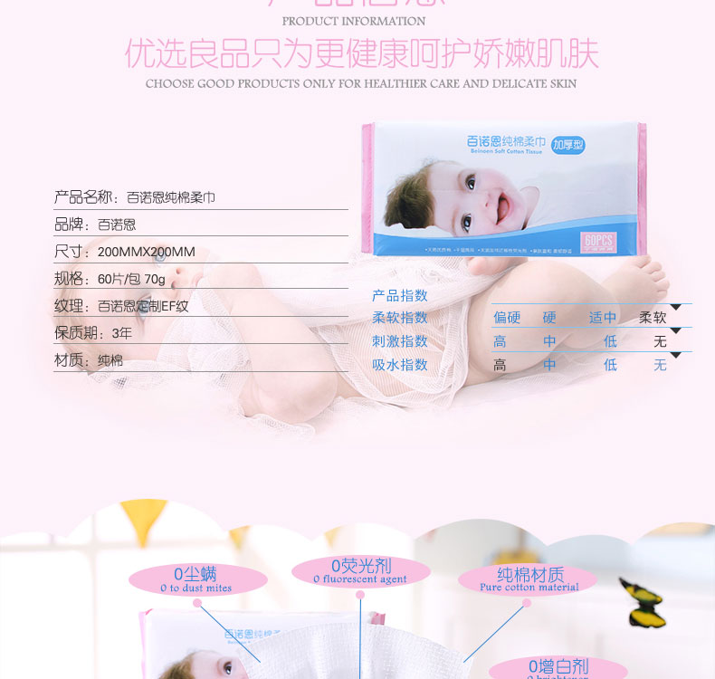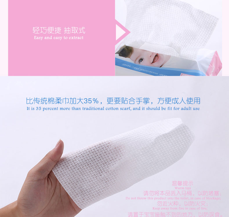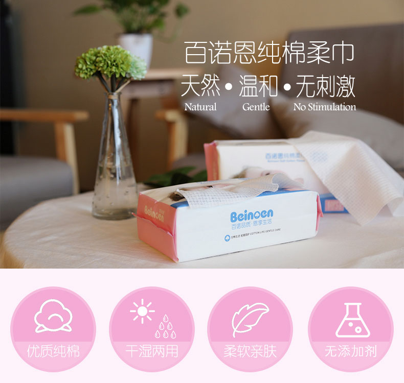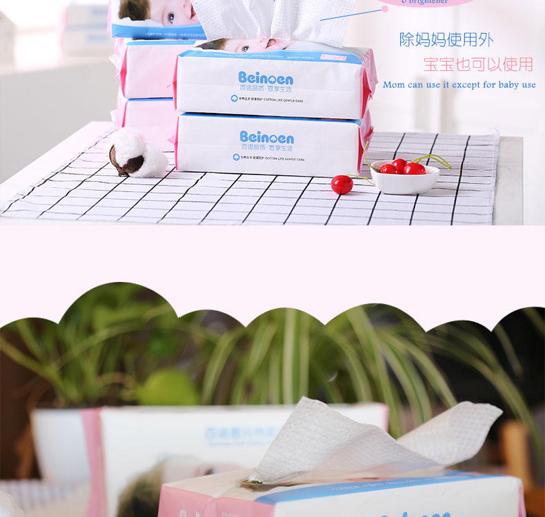 百诺恩棉柔巾加厚加大一次性洁面巾宝宝手口专用干湿两用巾5包装