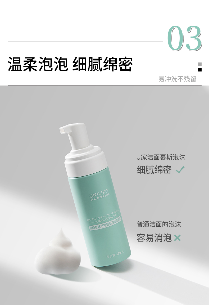 【新版】UNILIPO研知有理 葡糖苷云感净透泡泡洁面慕斯 150ml