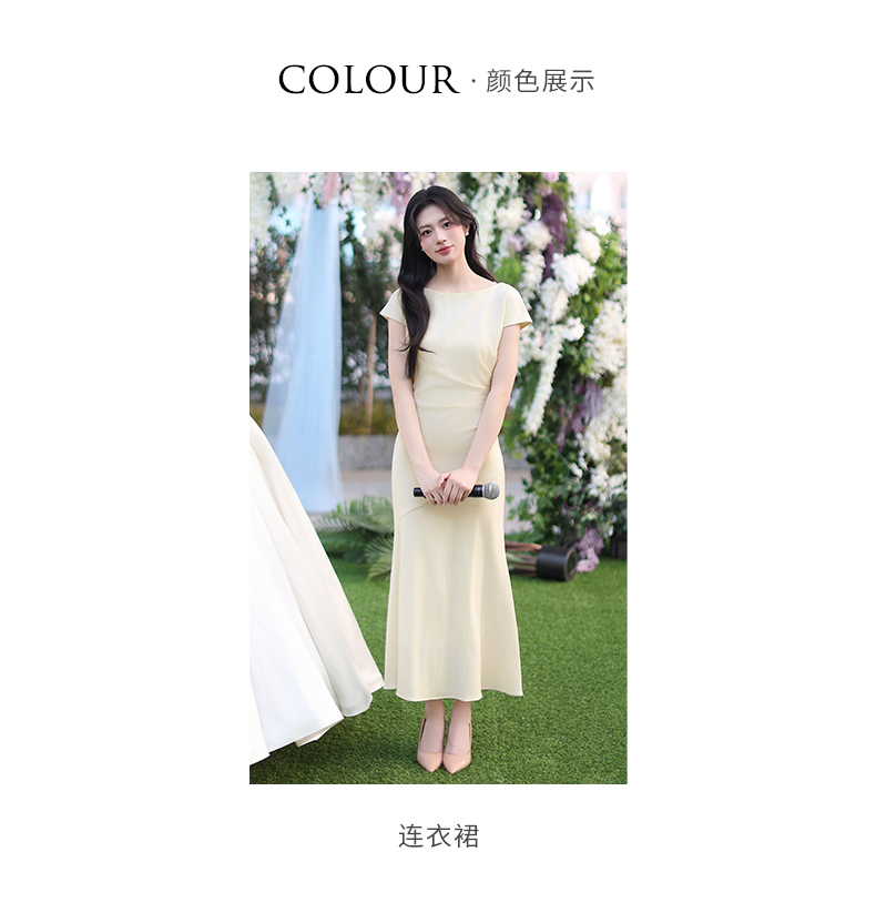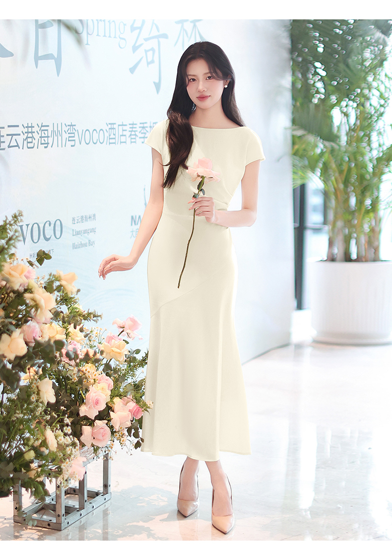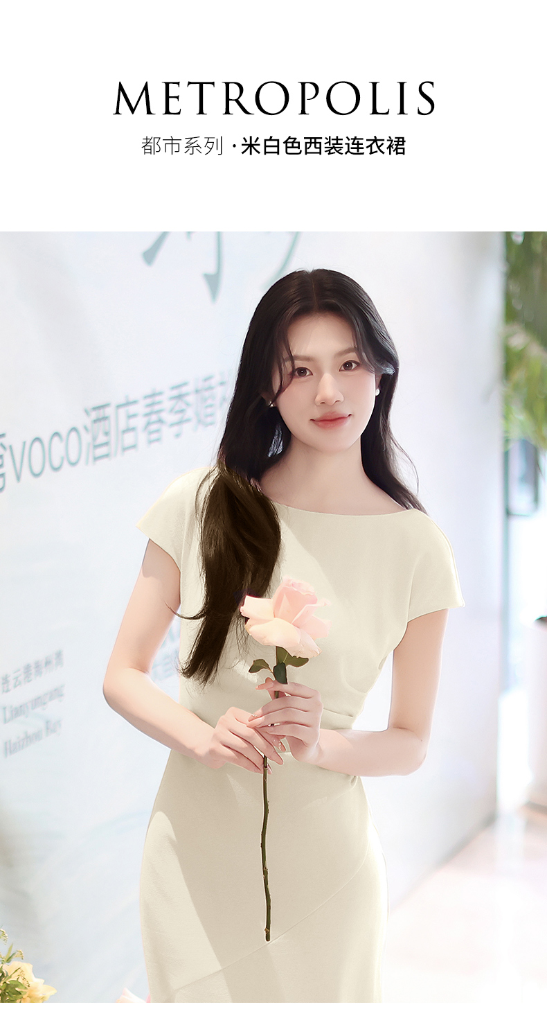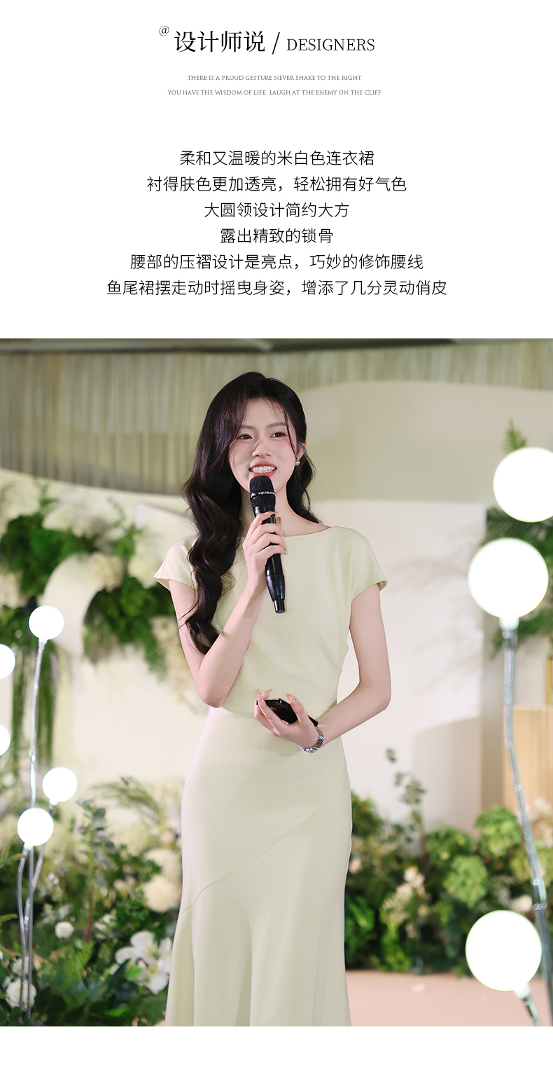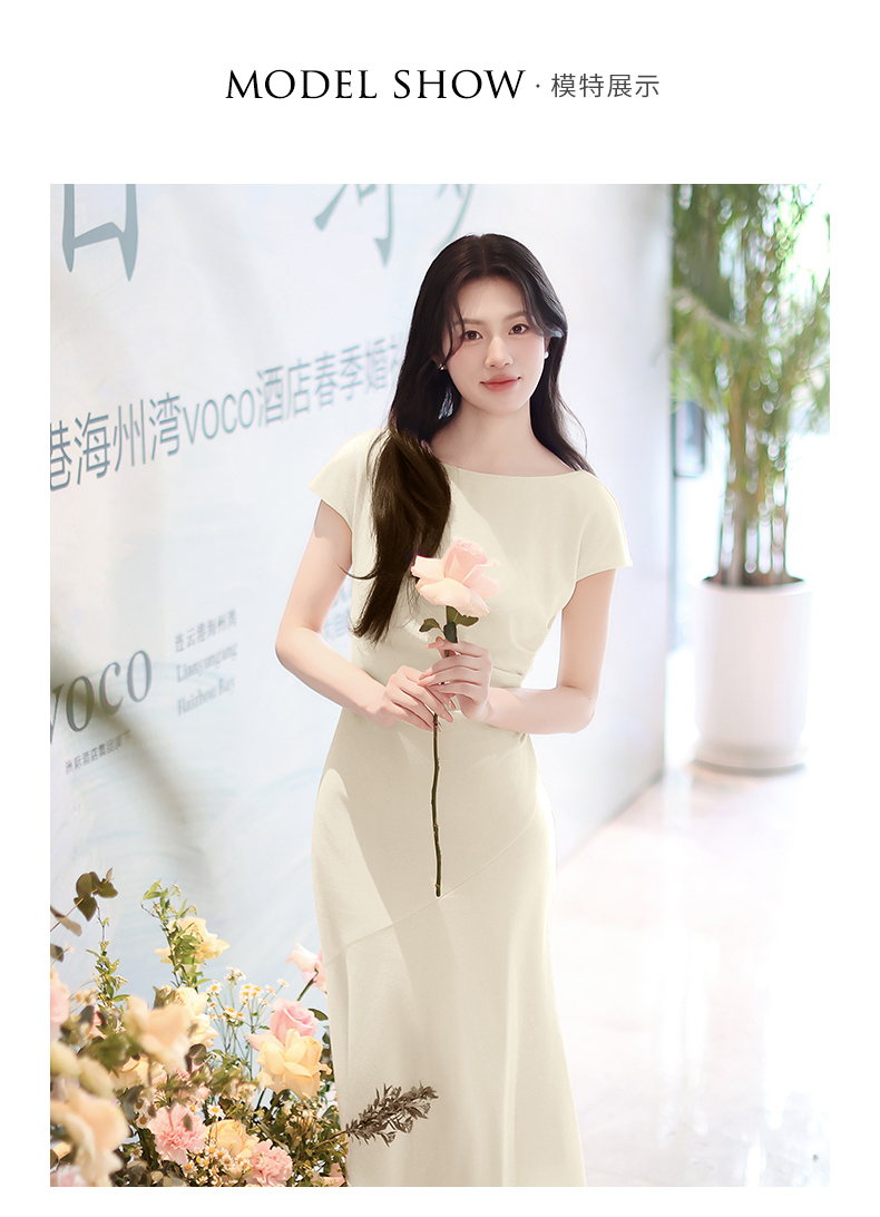 法小曼*子珍专款/高定设计师米白色气质连衣裙韩系主持高级感宴会礼服