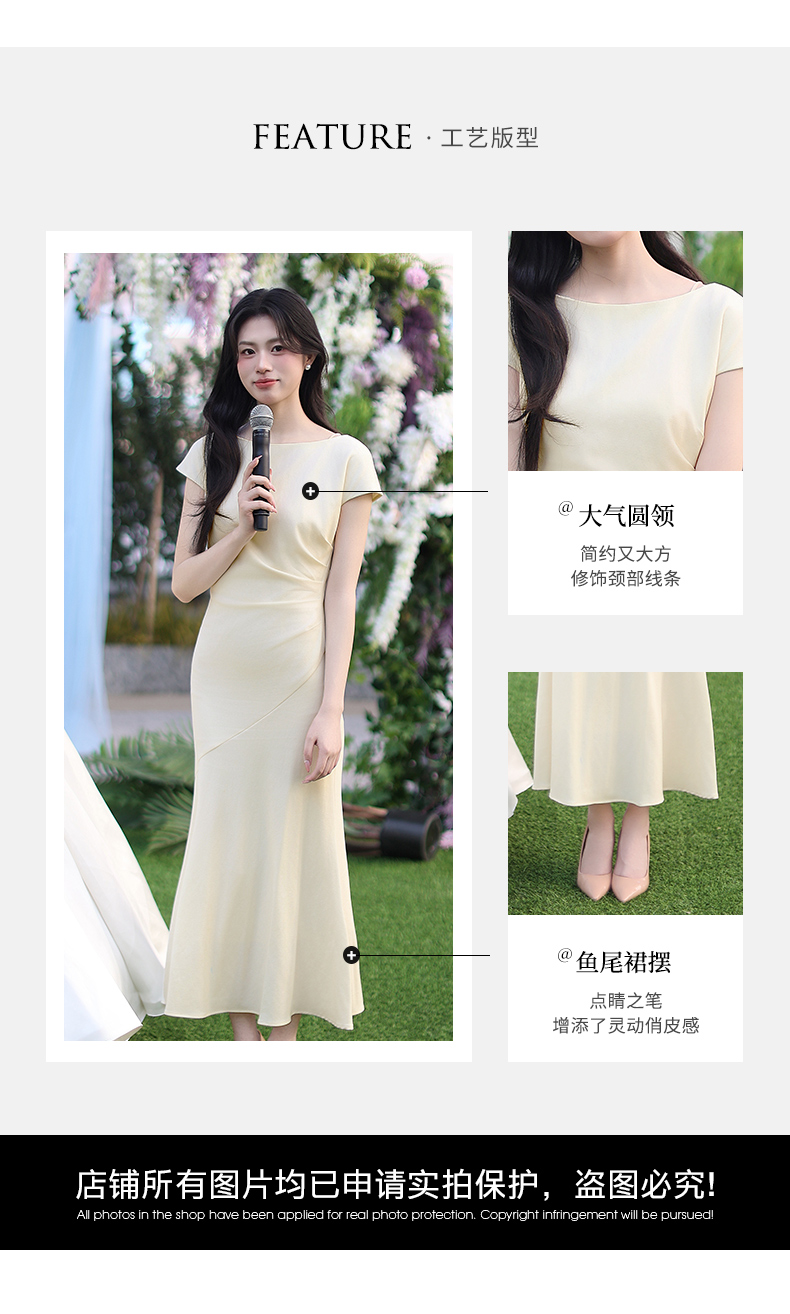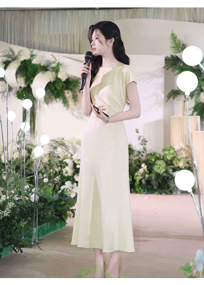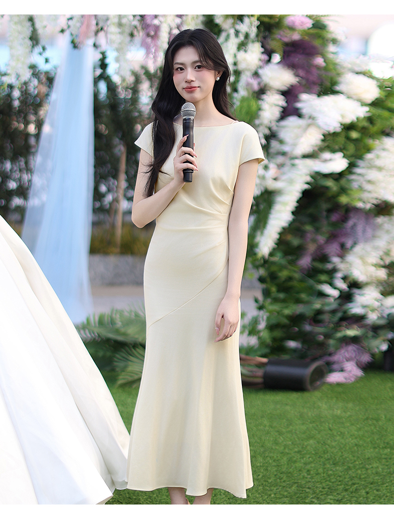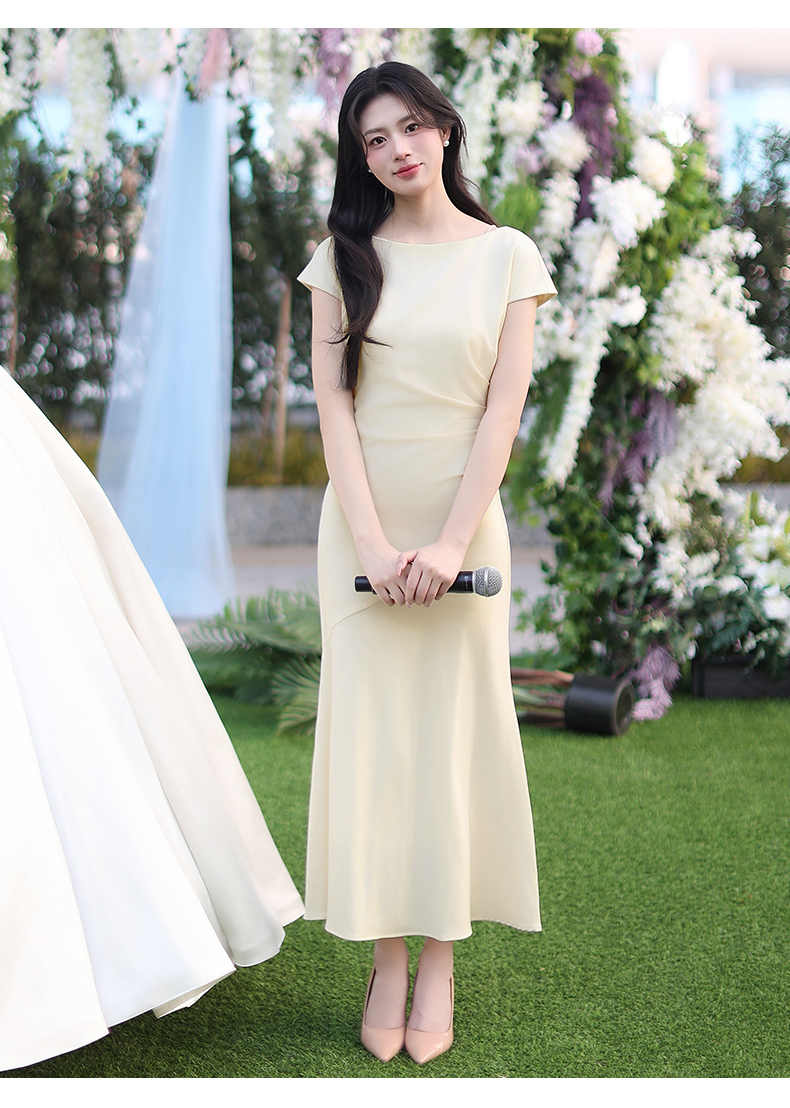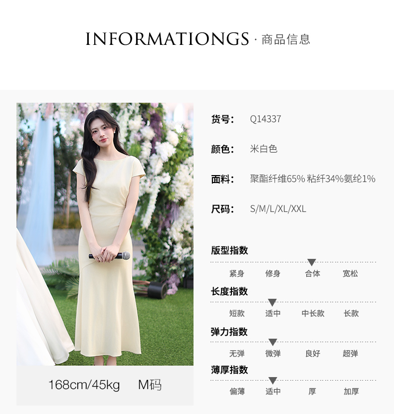法小曼*子珍专款/高定设计师米白色气质连衣裙韩系主持高级感宴会礼服