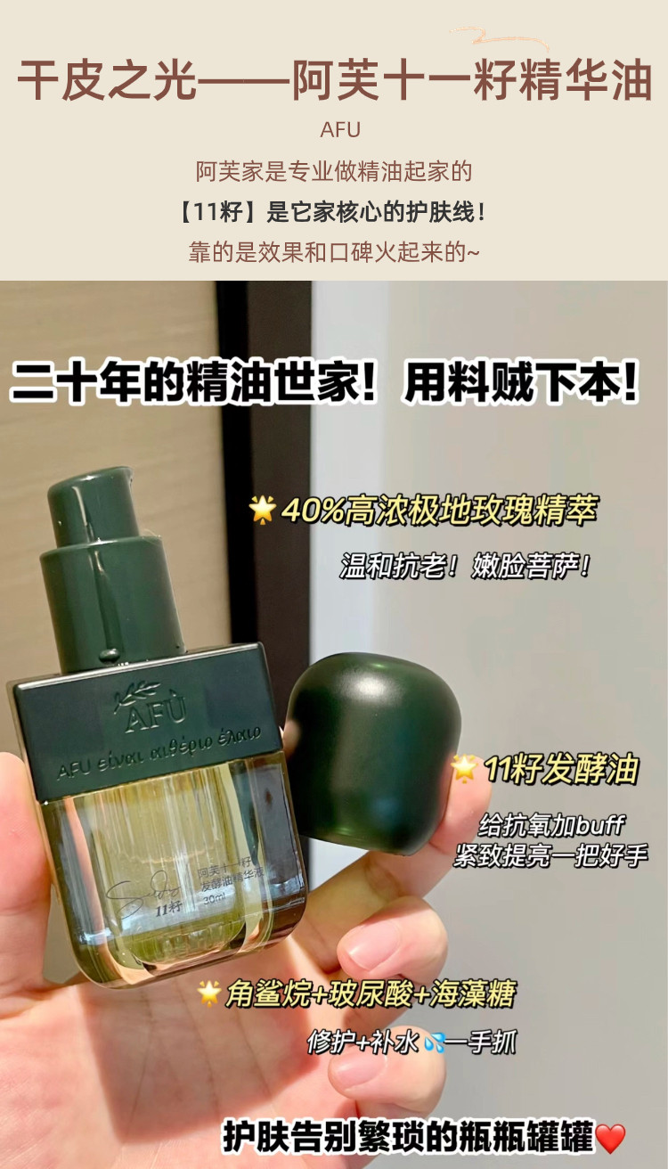 阿芙11籽精华油精油十一籽抗皱以油养肤精华液面部afu30ml
