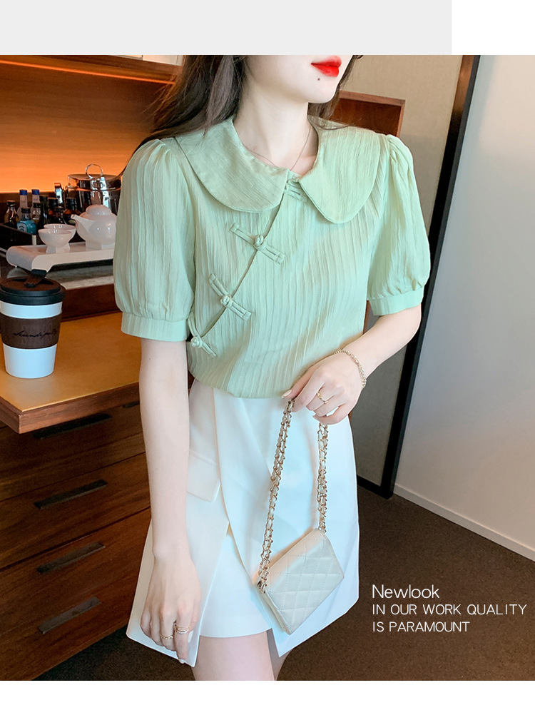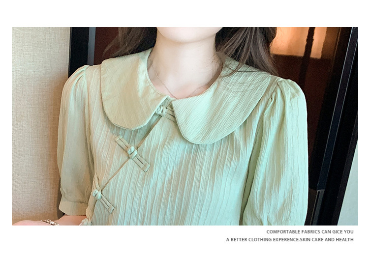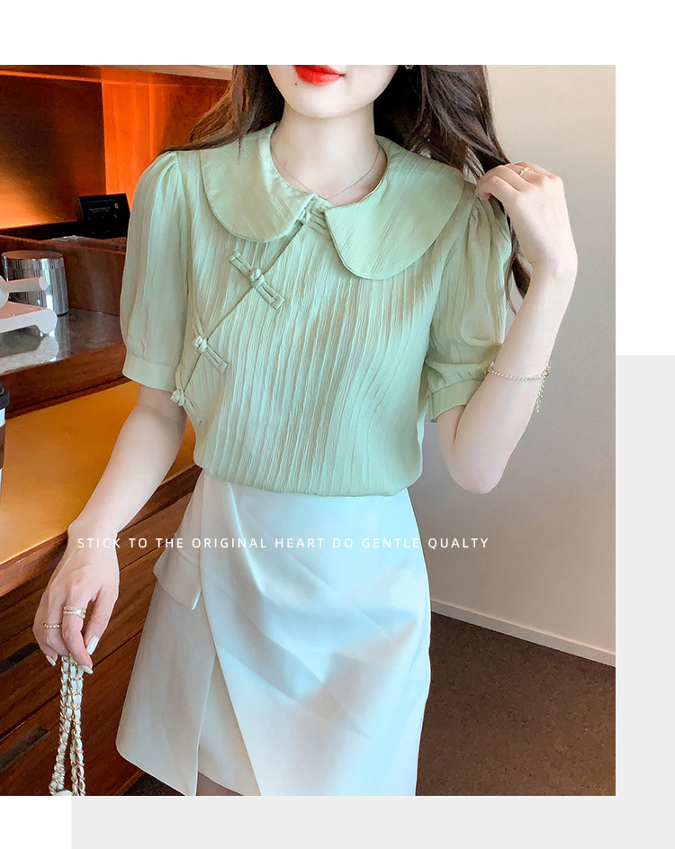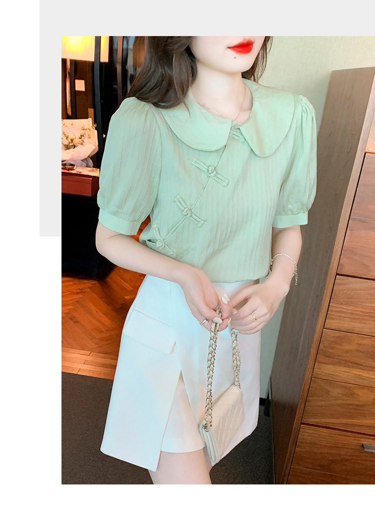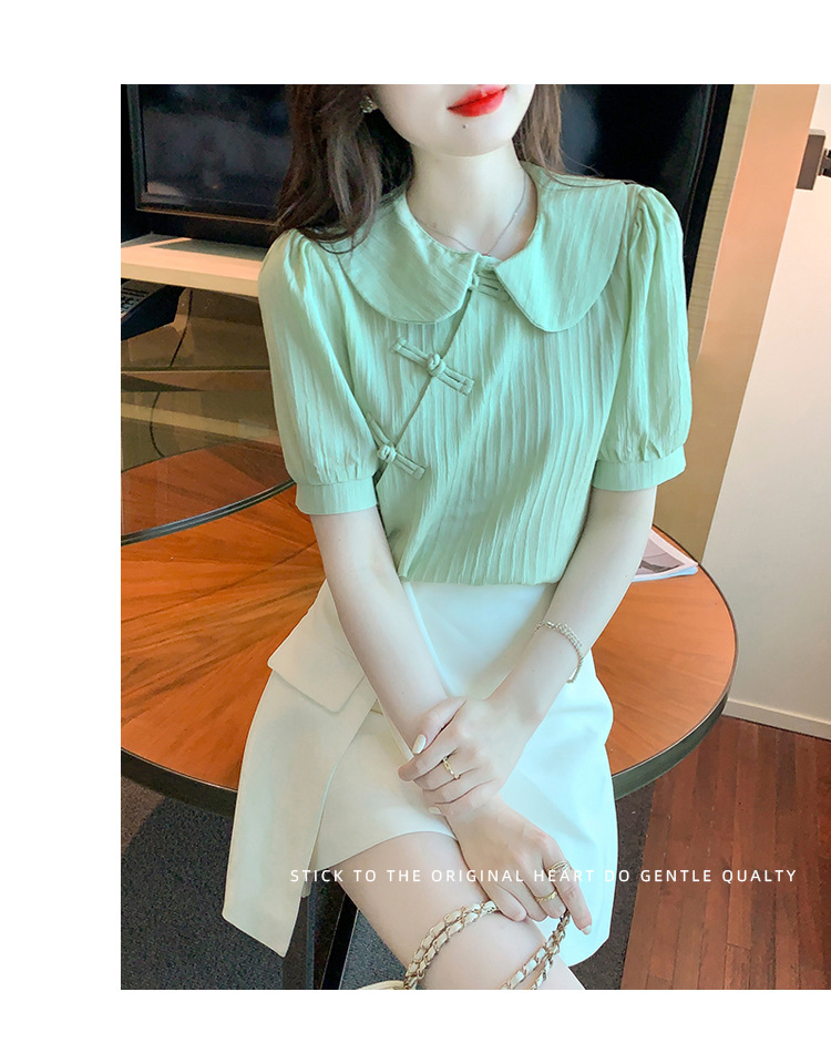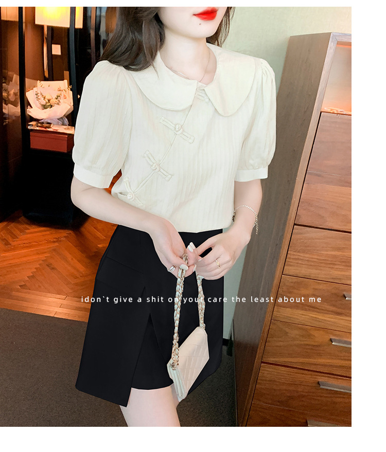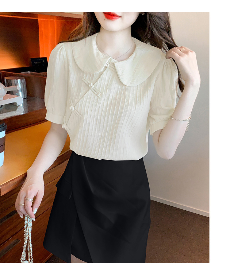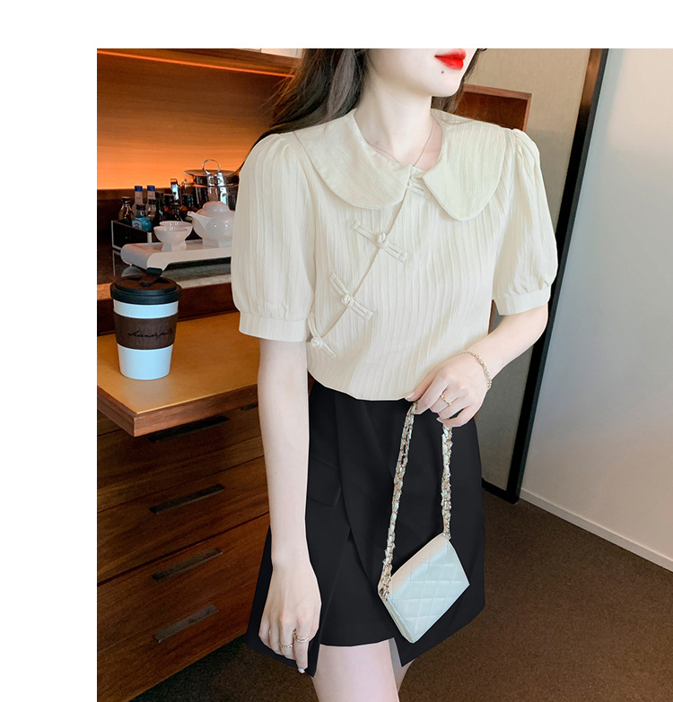 复古中国风,盘扣设计感娃娃领短袖衬衫KQL-9586