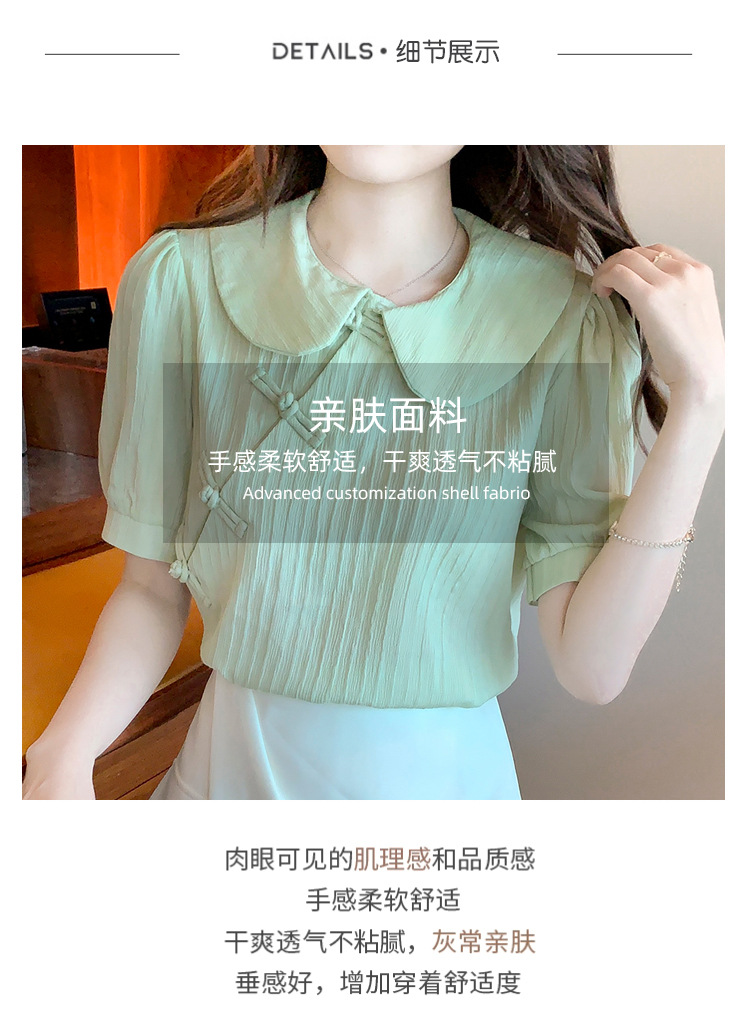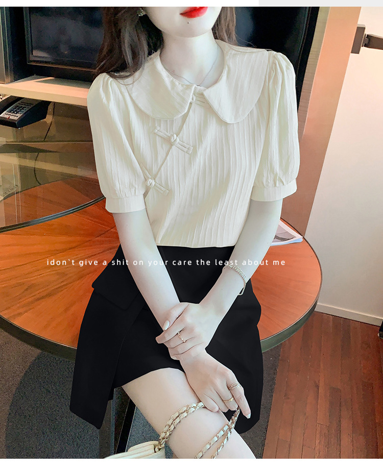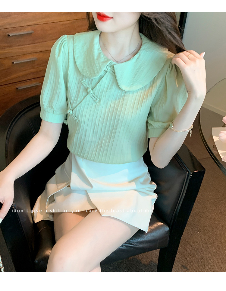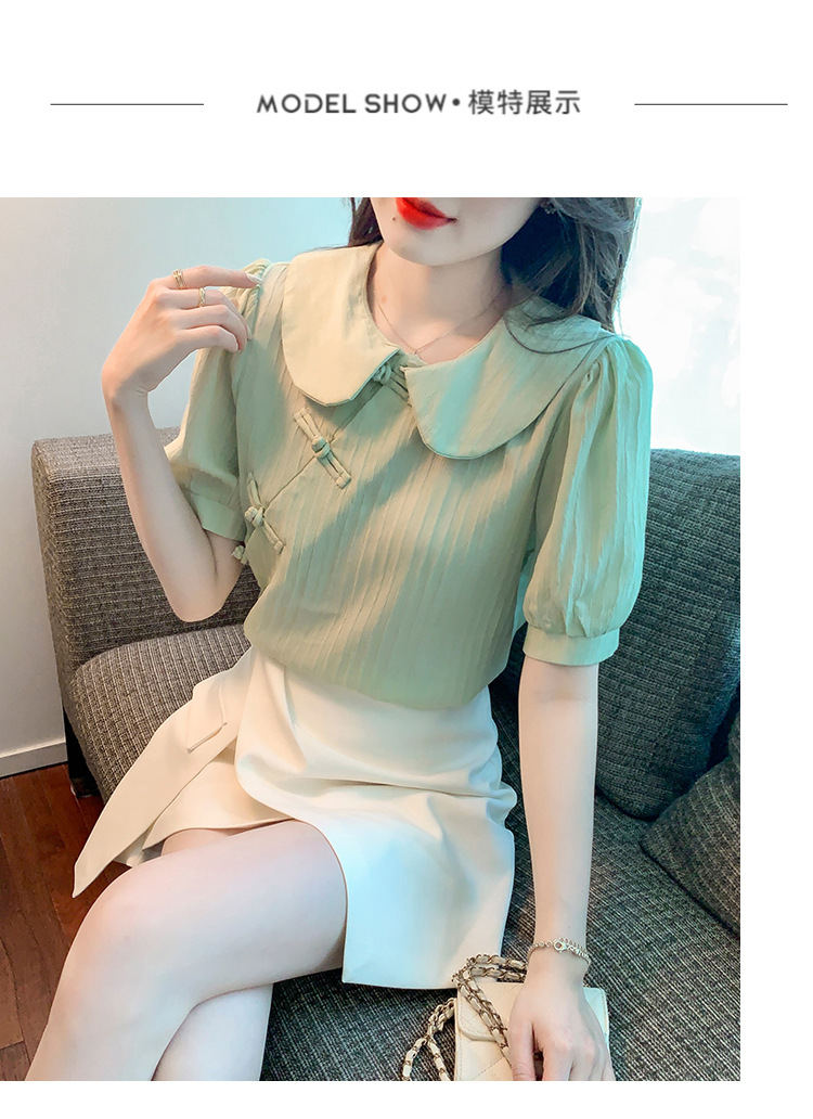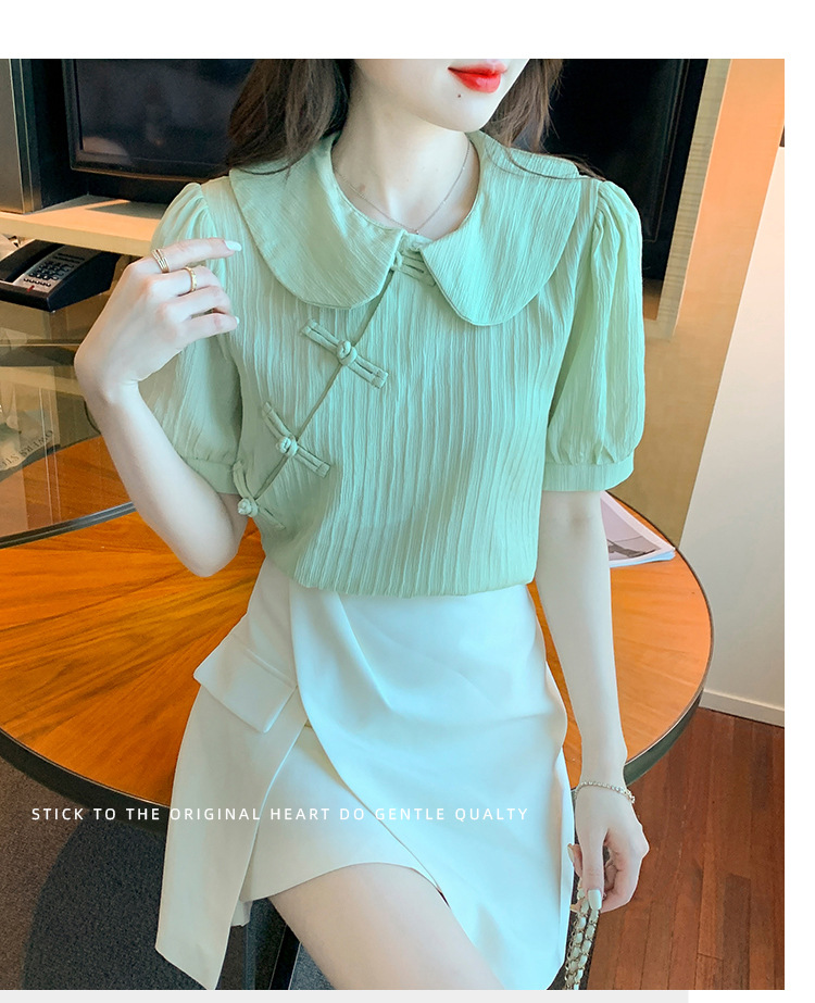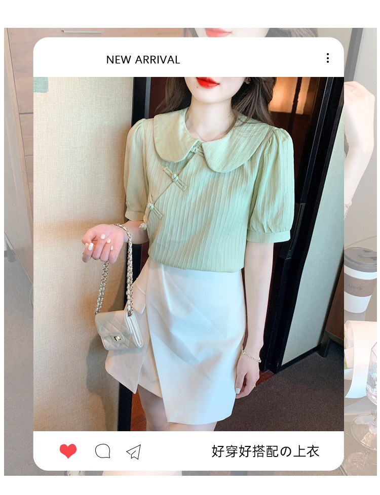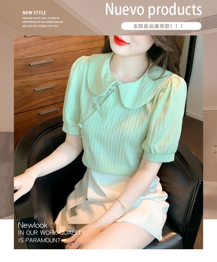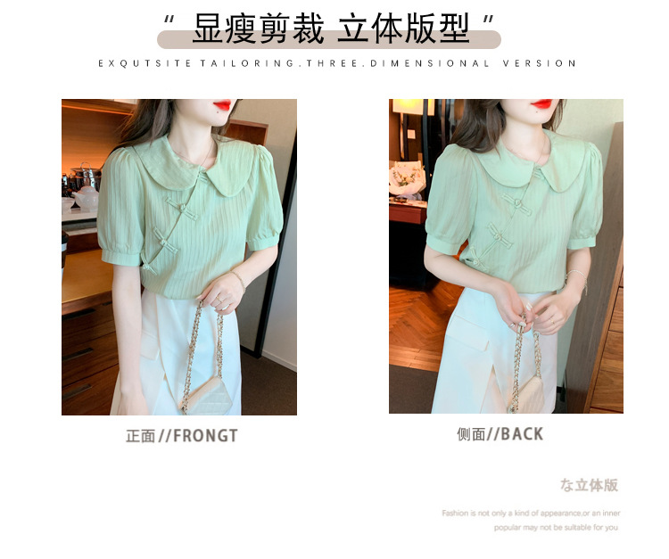 复古中国风,盘扣设计感娃娃领短袖衬衫KQL-9586