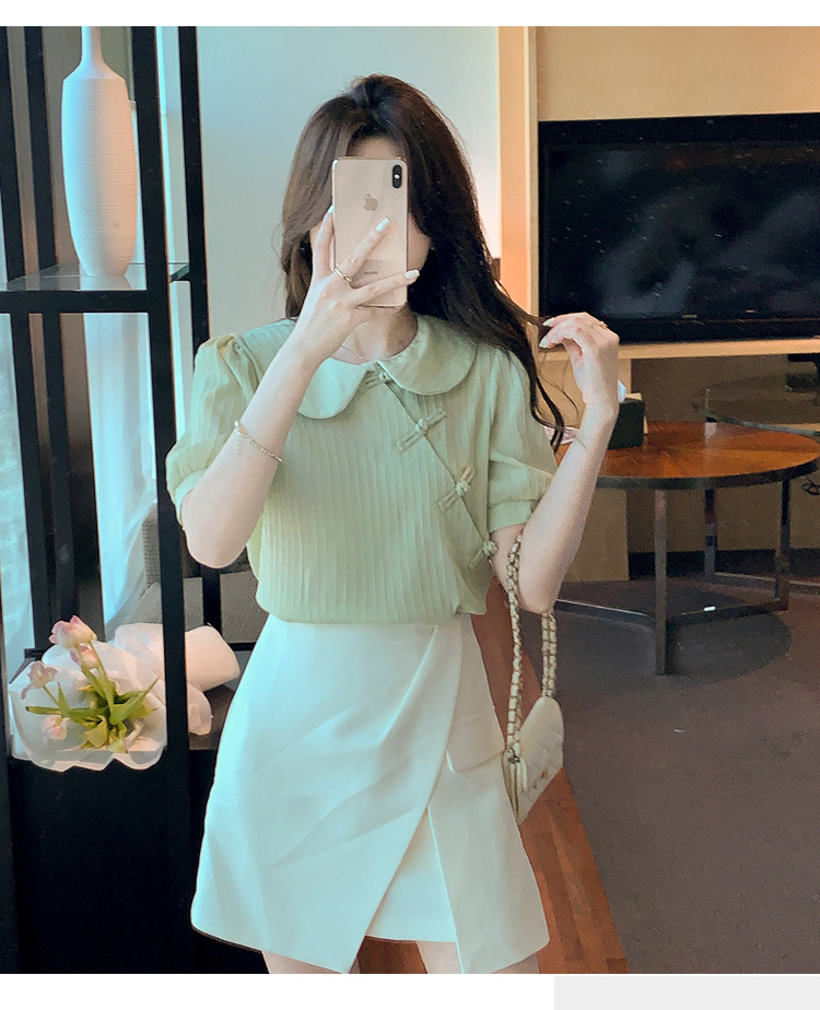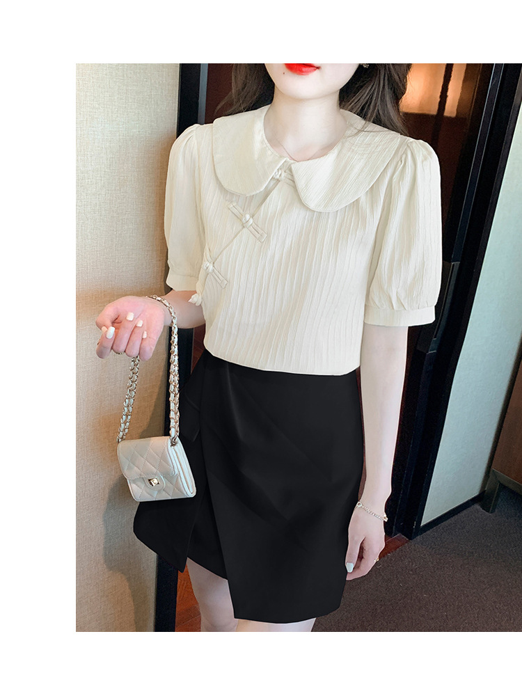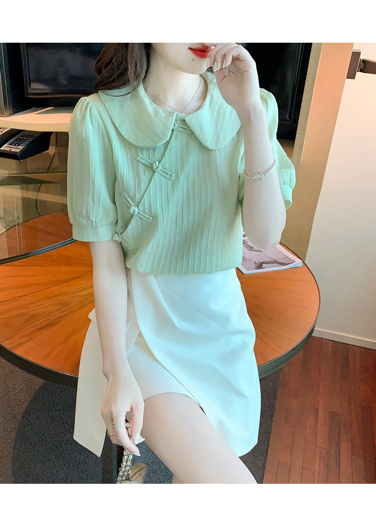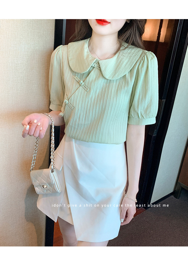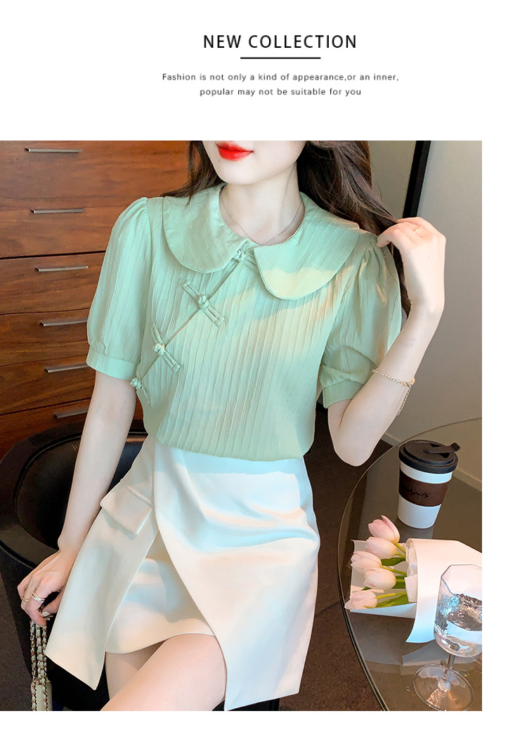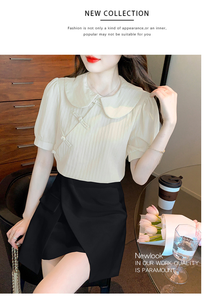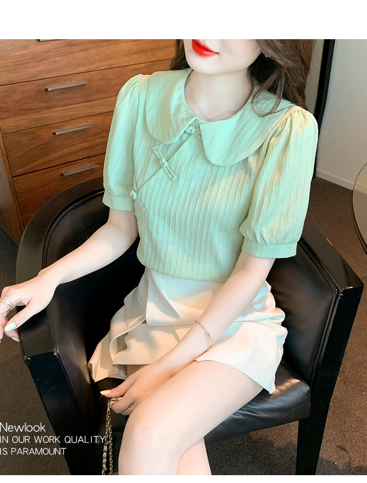复古中国风,盘扣设计感娃娃领短袖衬衫KQL-9586