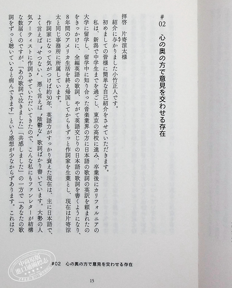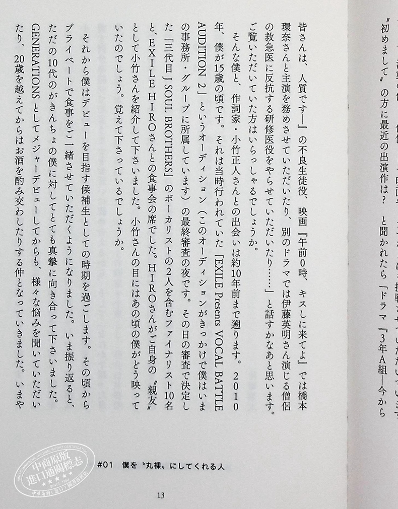 GENERATIONS from EXILE TRIBE的主音片寄凉太和出道前就认识他的作词家小竹正人。