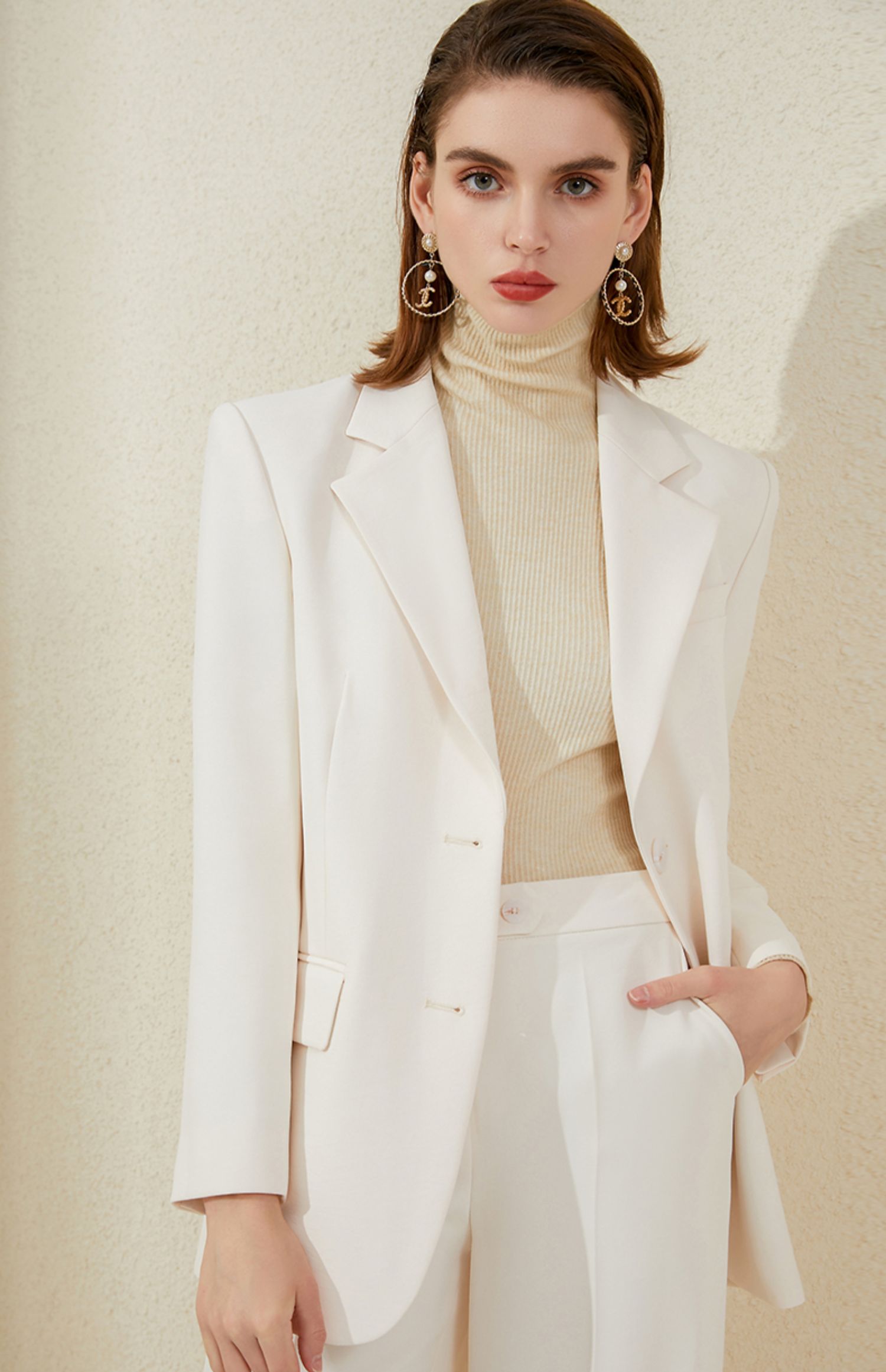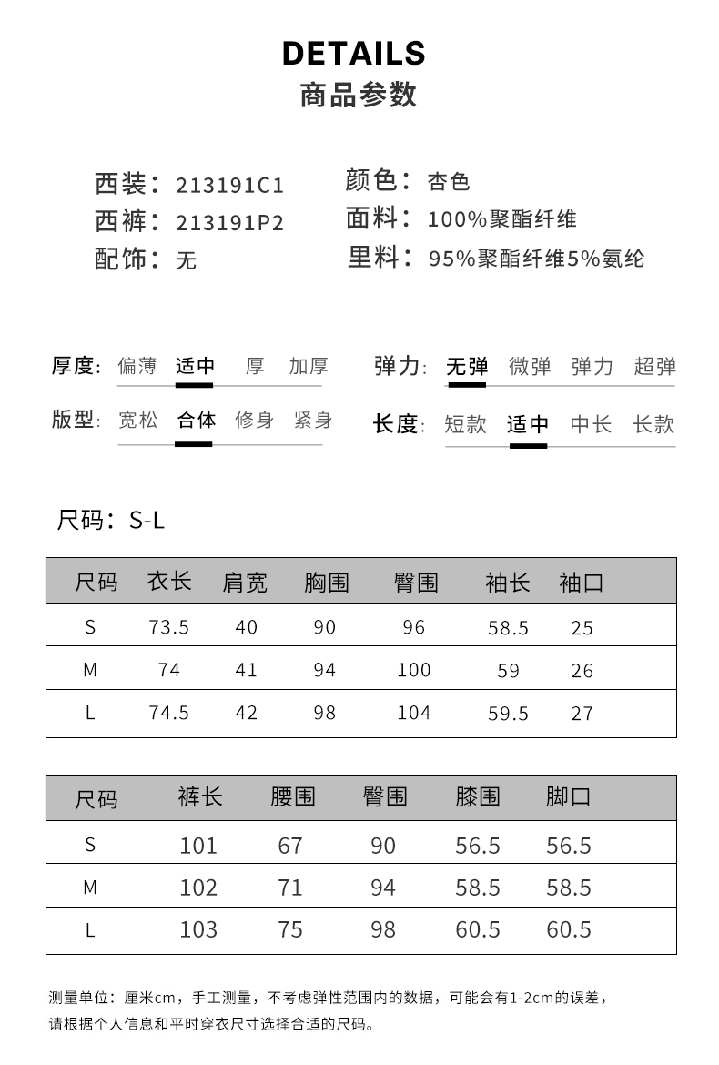 IWY/杏色休闲西装套装女韩版气质ol主持人职业装播音艺考面试正装213191C1+P2