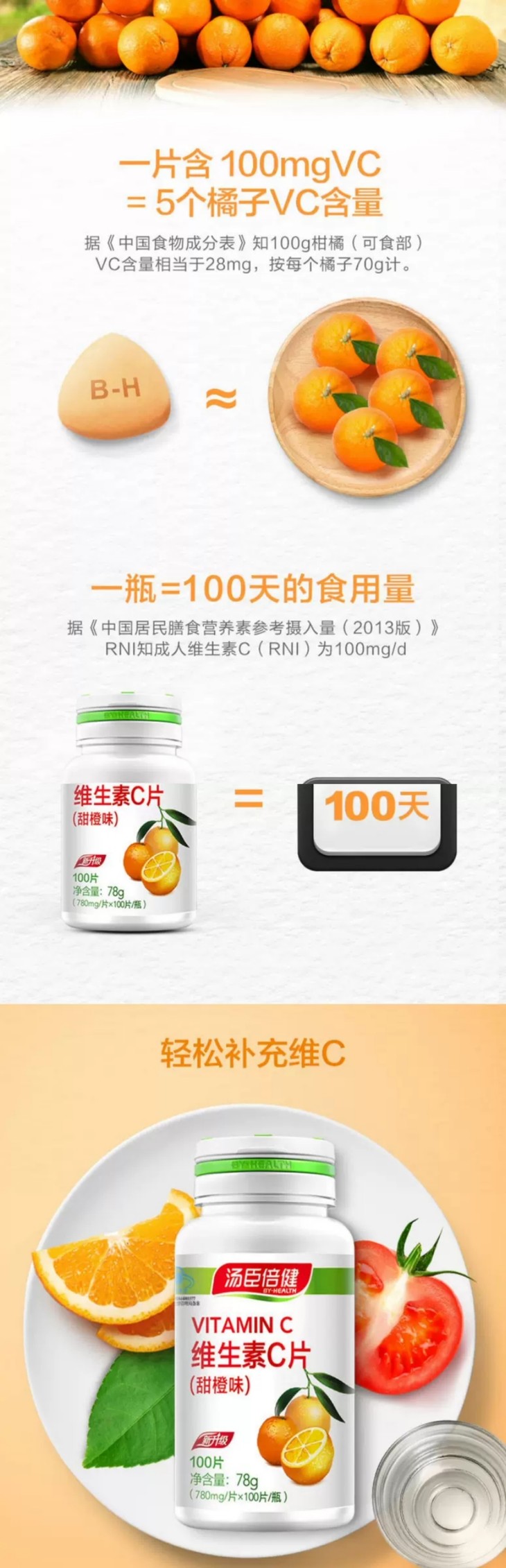汤臣倍健维生素C片(甜橙味) 780mg*100片