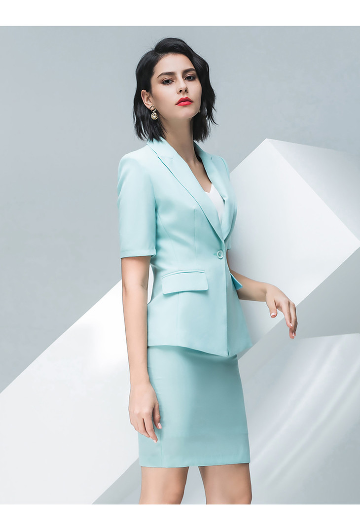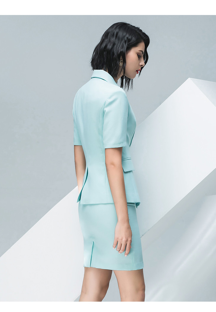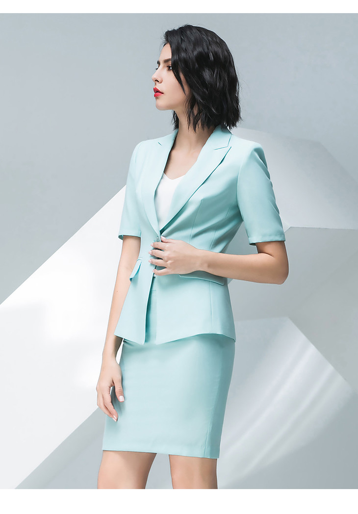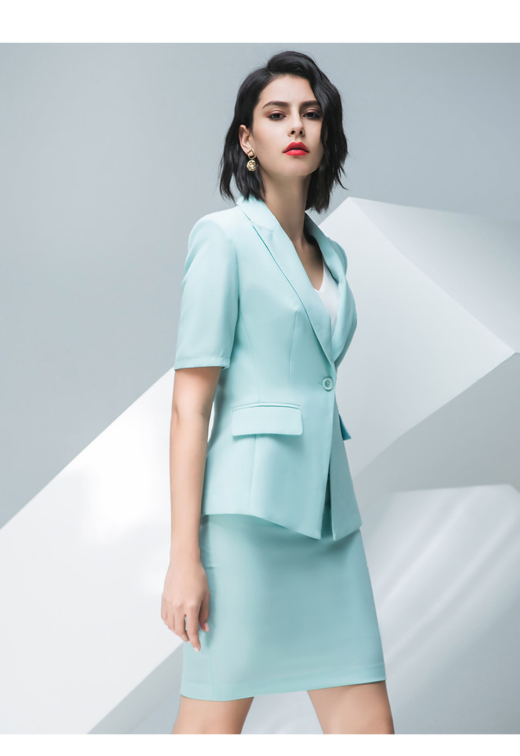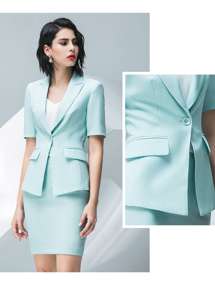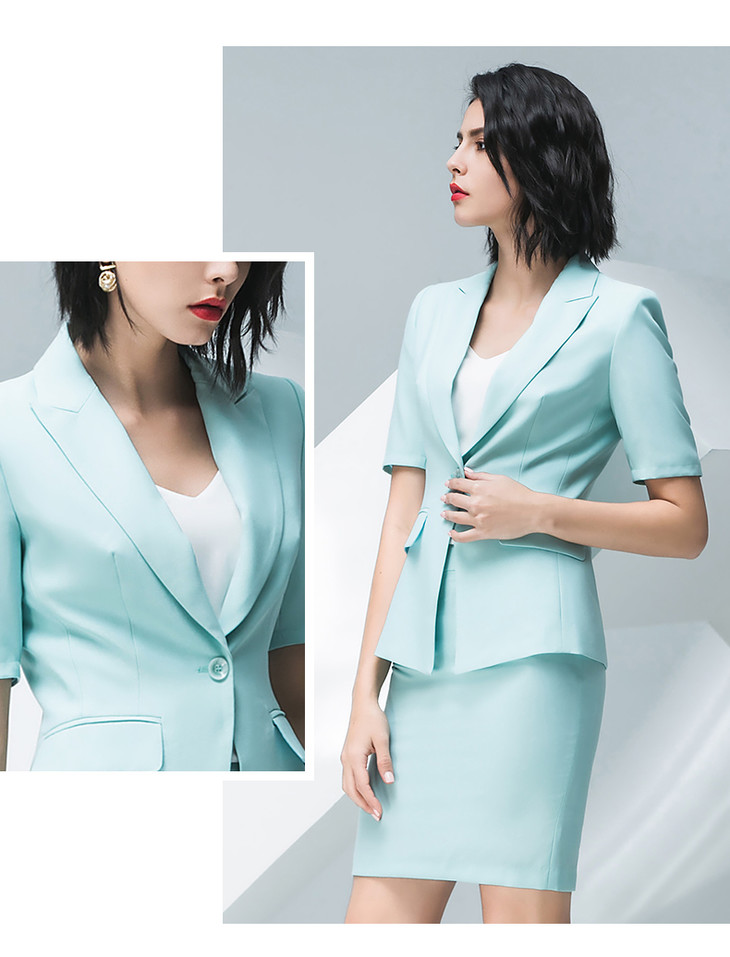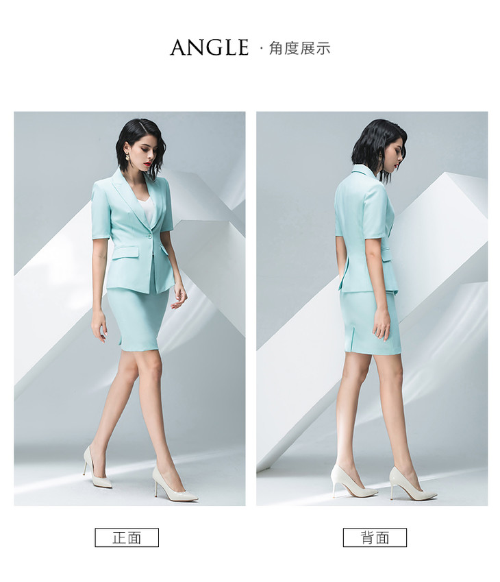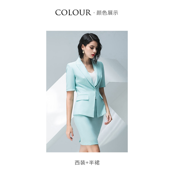 法小曼*子珍蓝色清新艺考主持人西装半裙套装女小香风优雅职业正装套裙