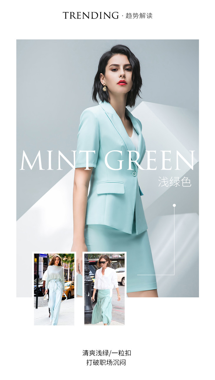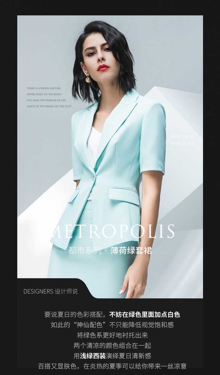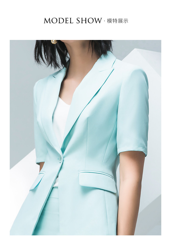 法小曼*子珍新款开春绿色七分袖套装清晰高级显瘦西服套装