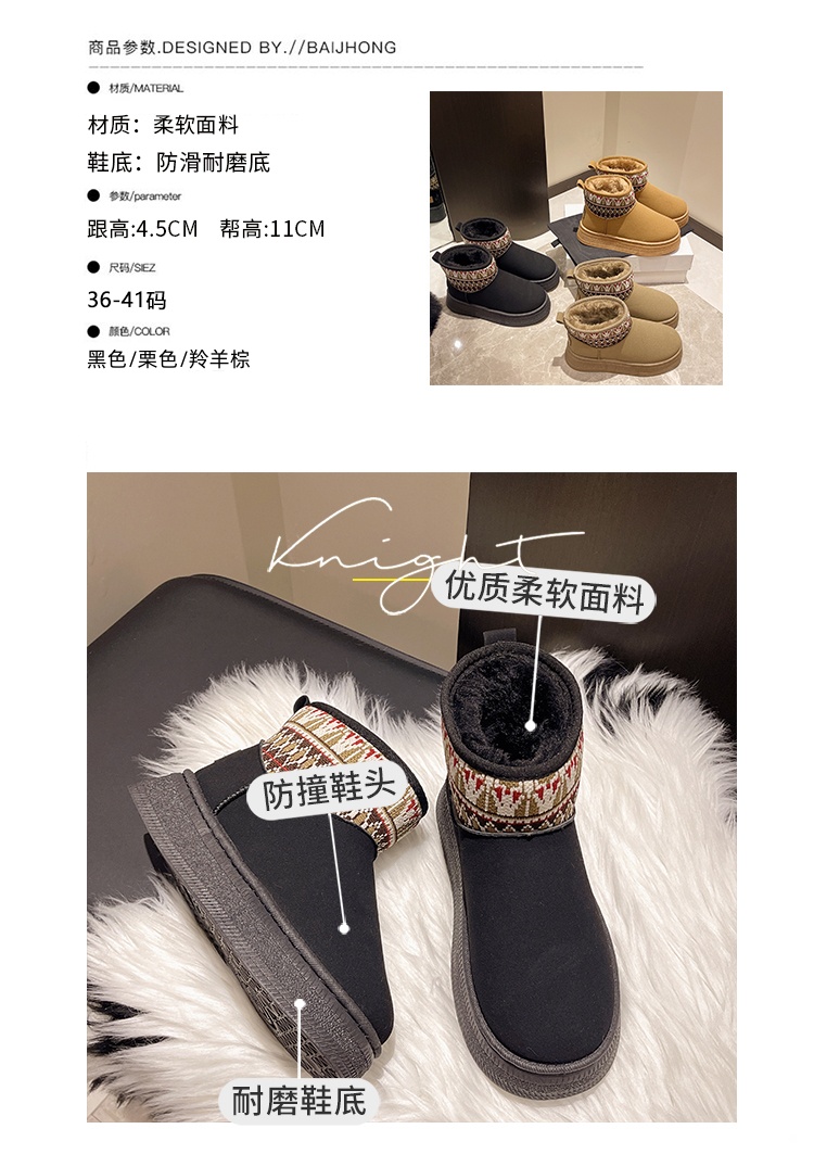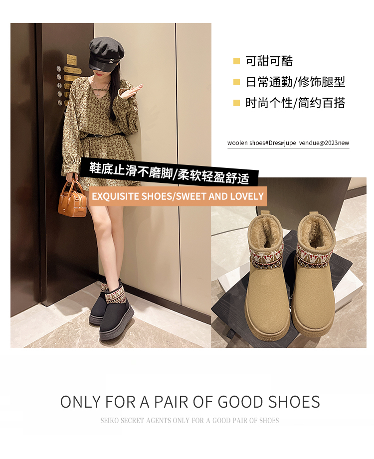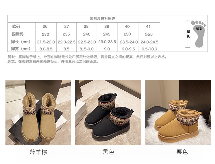 【特妮娜 厚底民族风雪地靴】日常通勤 简约百搭 加厚保暖内里 360°聚温保暖 时尚鞋床设计柔软亲肤 舒适不磨脚 呵护您的双足 GF-260