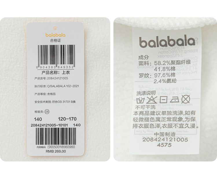 巴拉巴拉女童儿童卫衣加绒保暖秋冬装中大童甜美上衣圆领套头卡通