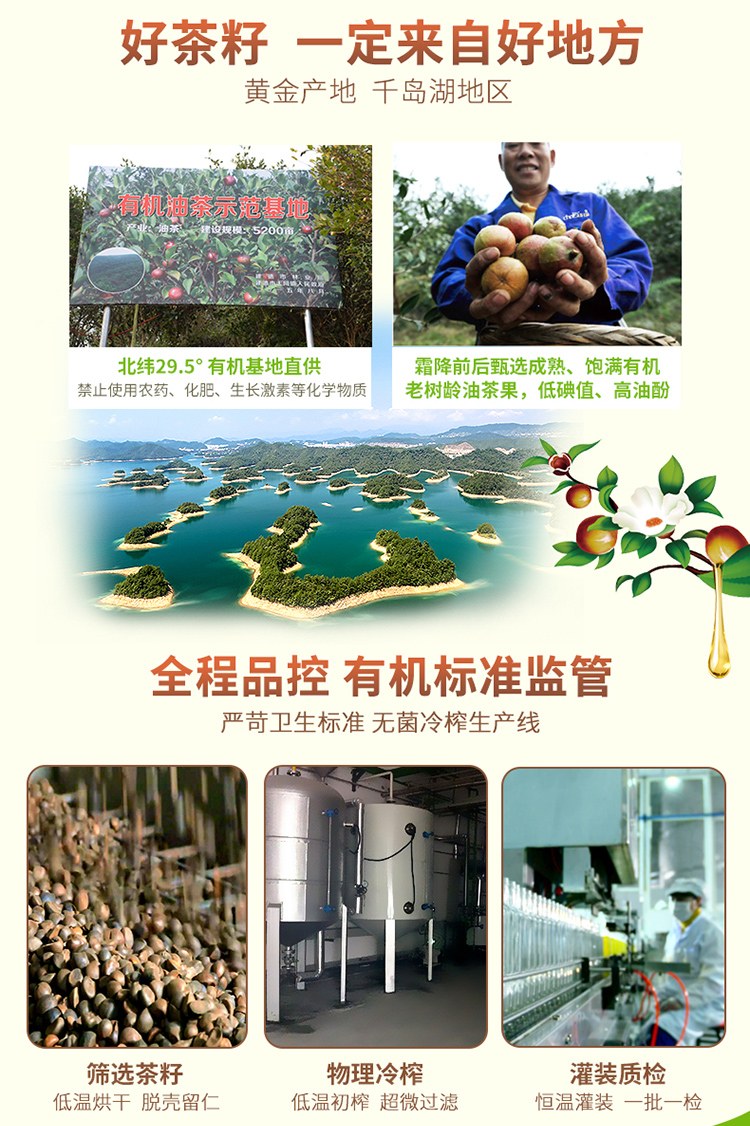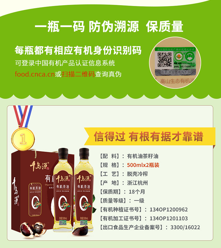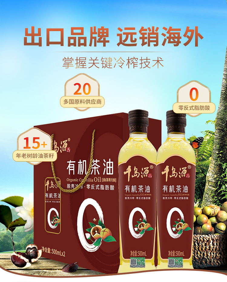 千岛源有机冷榨0反式脂肪酸山茶油礼盒500ml*2