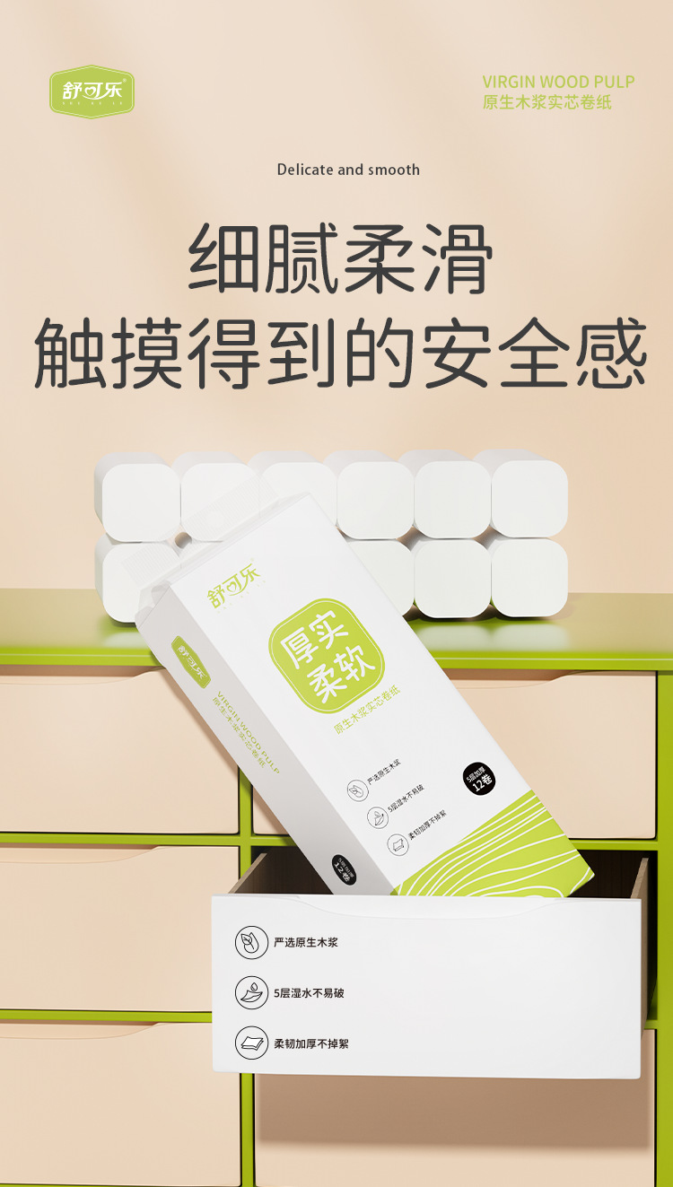 【五层加厚!柔软舒适】舒可乐卫生纸卷纸家用小卷无芯卫生纸5层加厚擦手纸厕纸卷筒纸巾。ry
