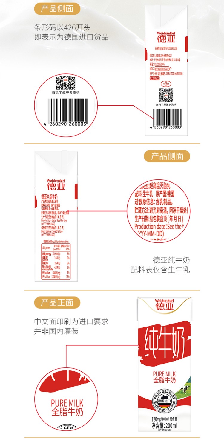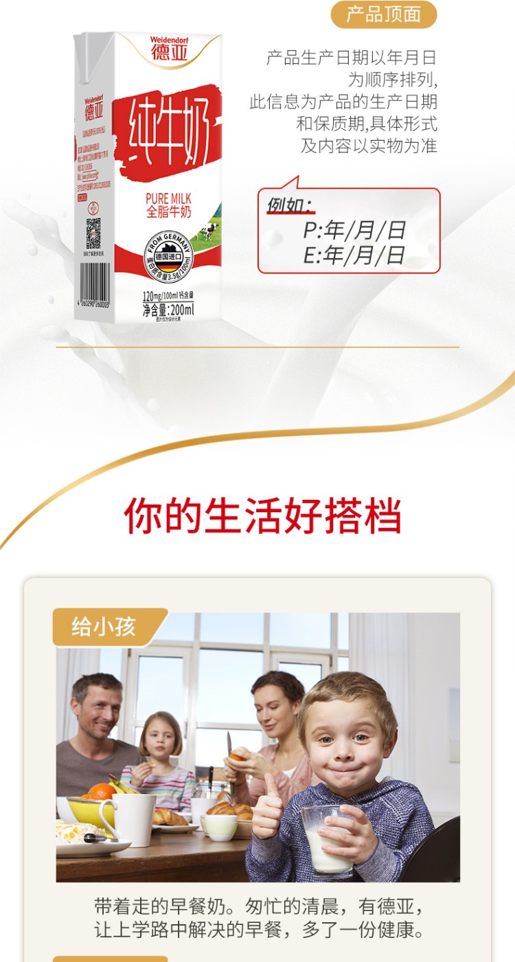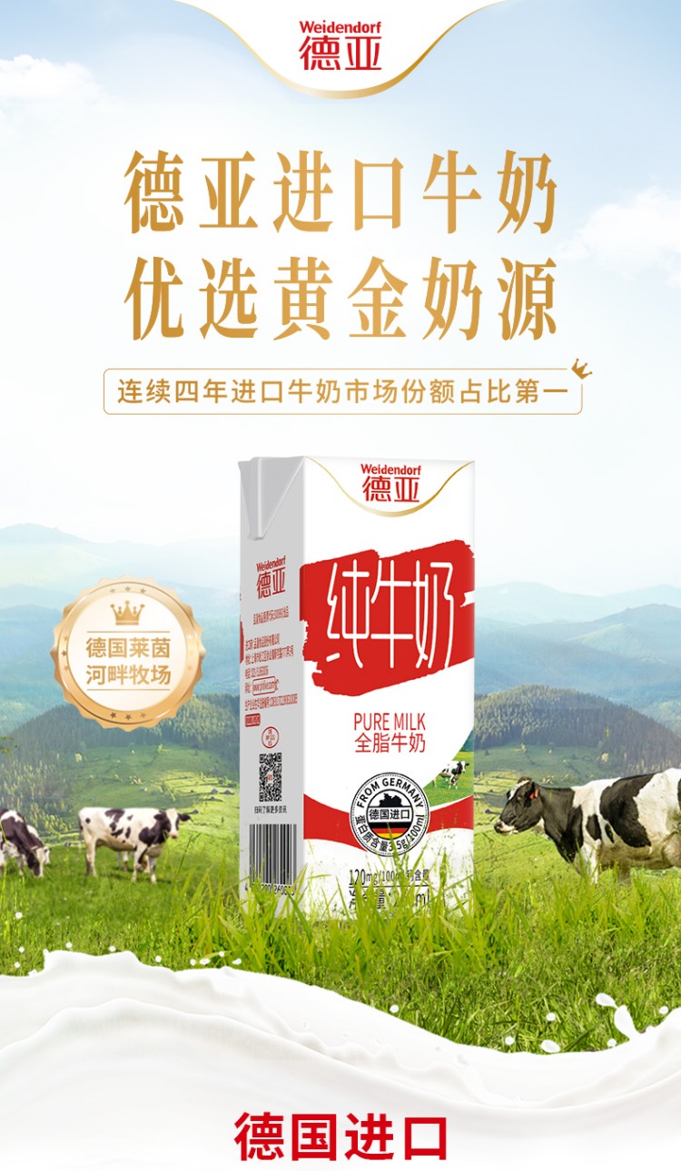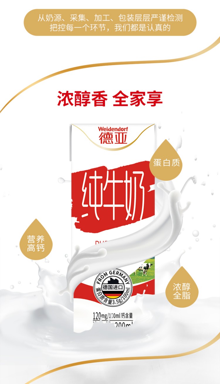 德亚欧洲优选全脂牛奶200mlx12