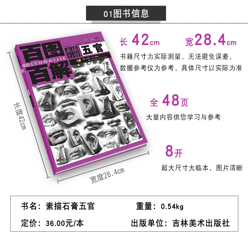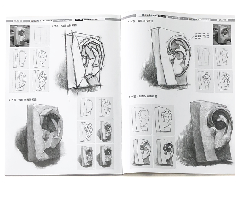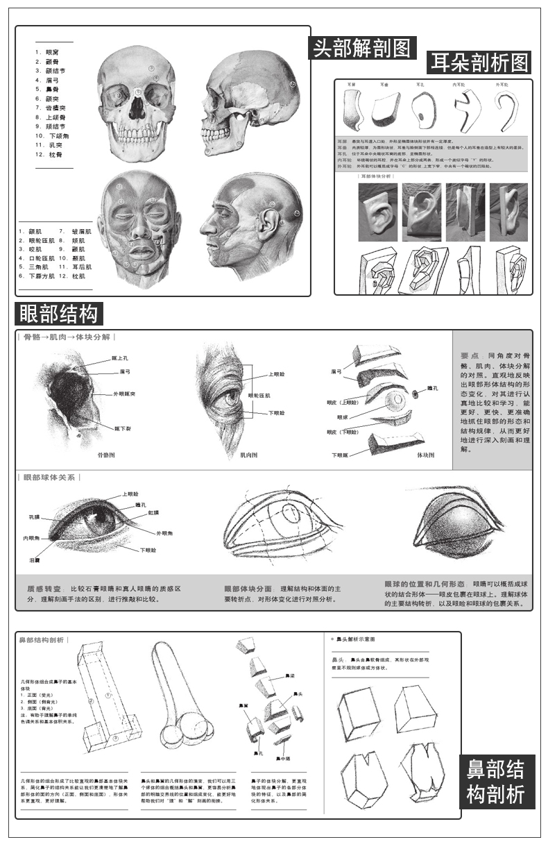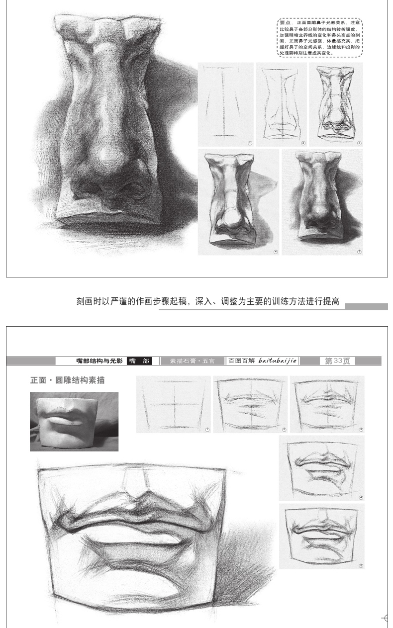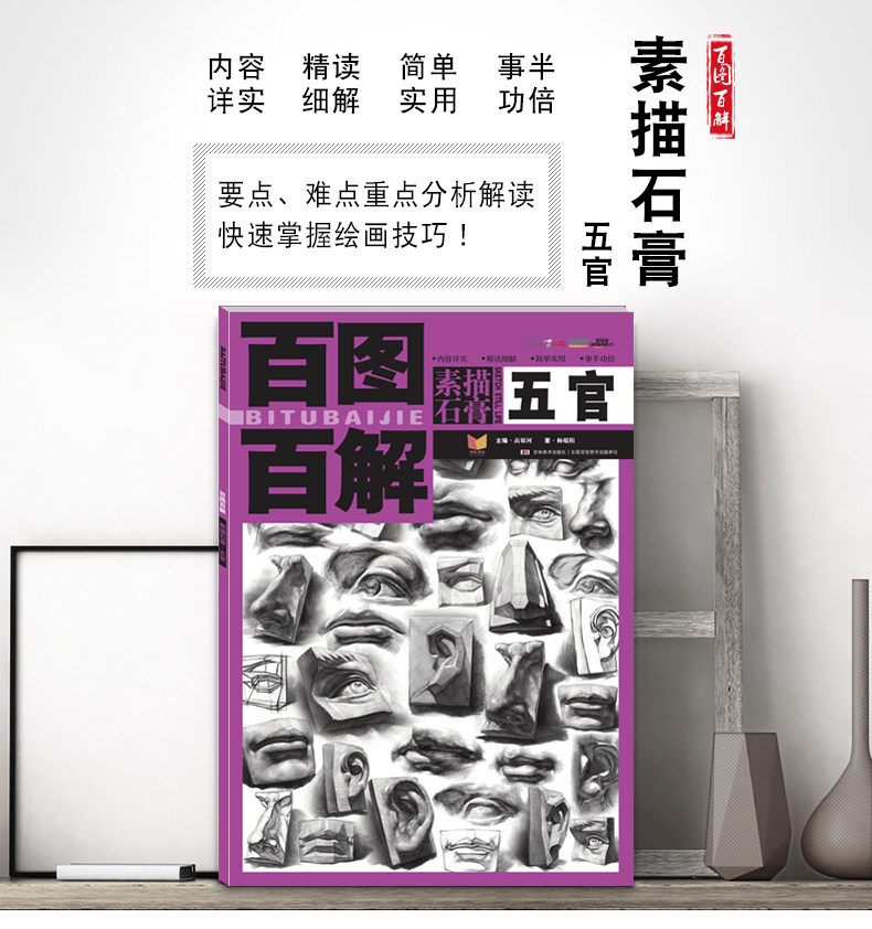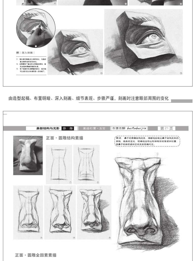 百图百解 五官素描基础教程人物石膏几何体头像静物线性结构高考艺考铅笔画手绘素描入门自学零基础绘画教程书临摹速写美术素描书
