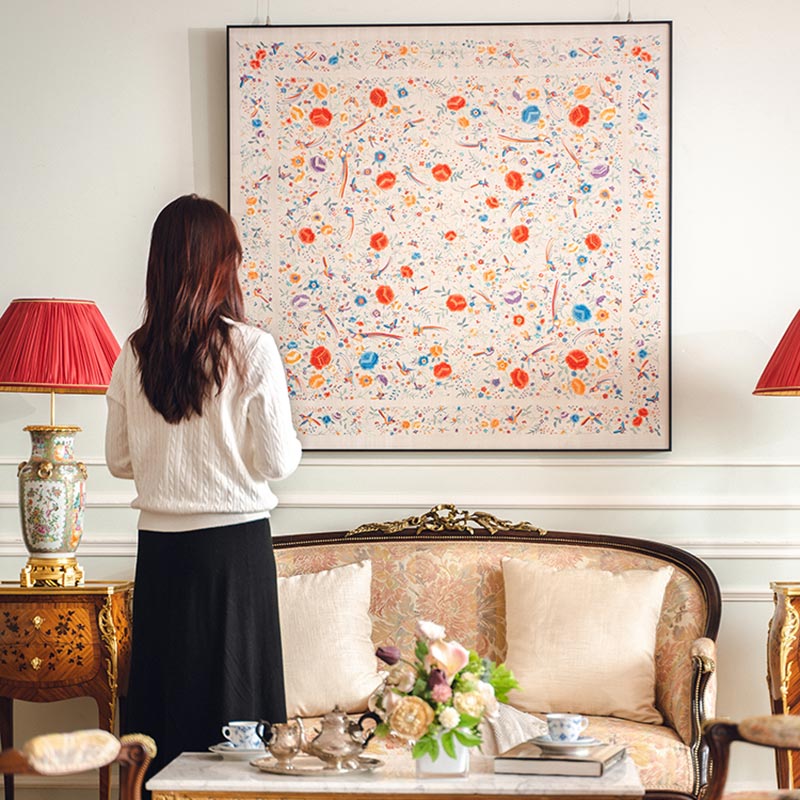 20世纪初中国出品「锦上添花」传统东方花鸟主题粤绣挂屏