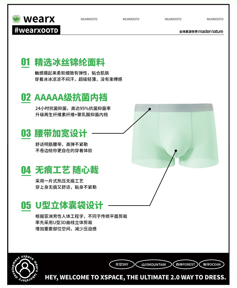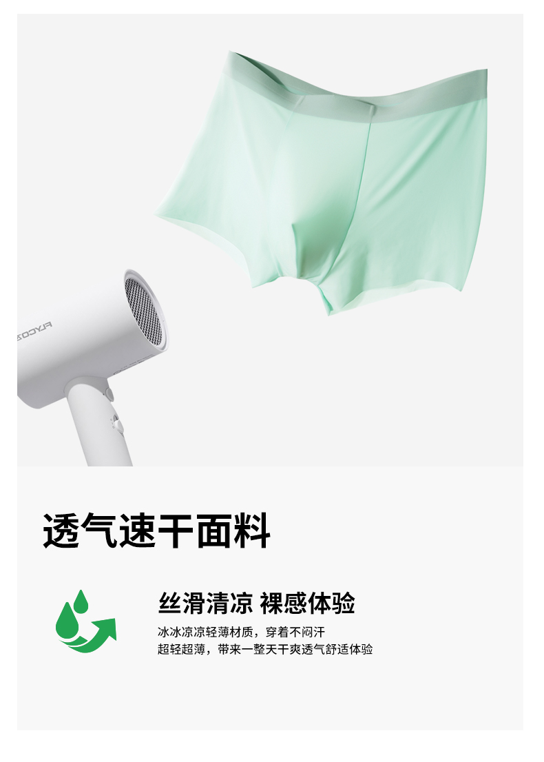 完型无痕冰皮内裤凉感5A抗菌男士平角内裤