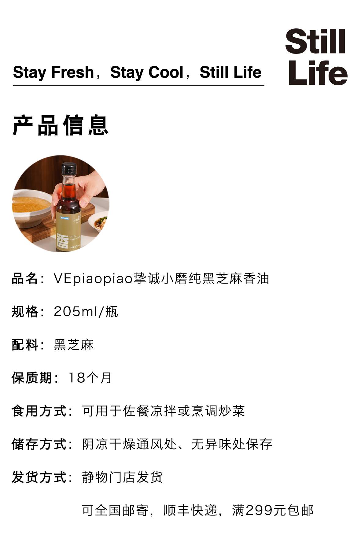 小磨纯黑芝麻香油205ml/瓶