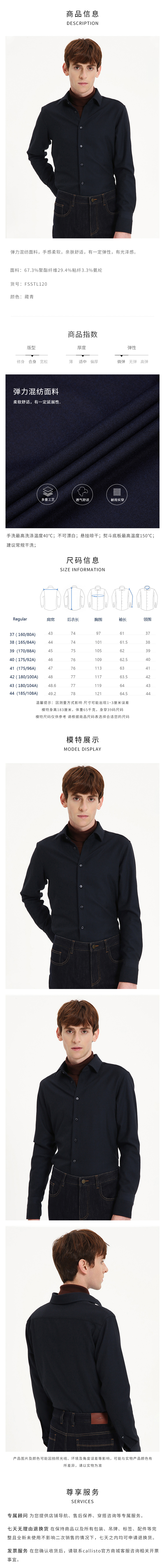 callisto藏青弹力混纺长袖衬衫 FSSTL120Y NA