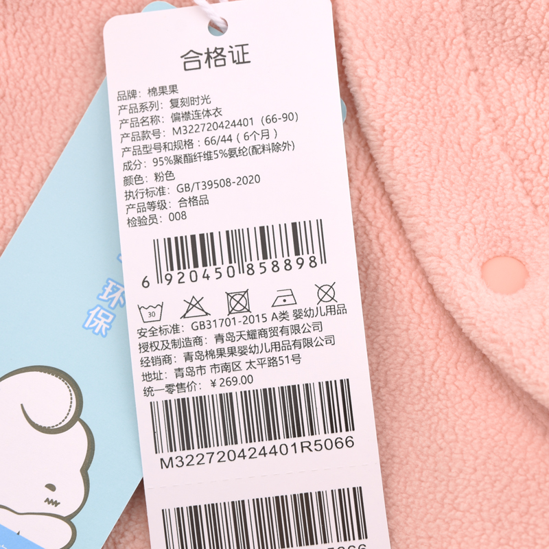 棉果果秋季新品女童秋冬加绒加厚卡通爬服偏襟连体衣M322720424401