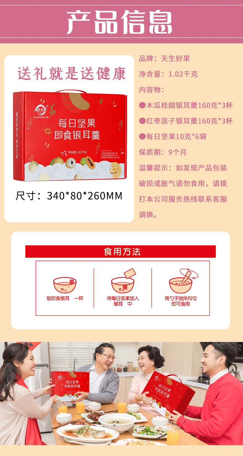 天生好果每日坚果即食银耳羹红枣莲子木瓜桂园速食大礼包送礼免煮