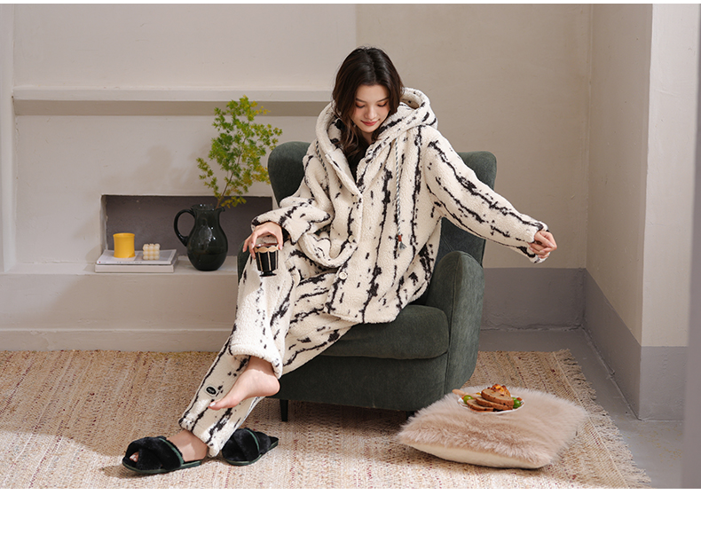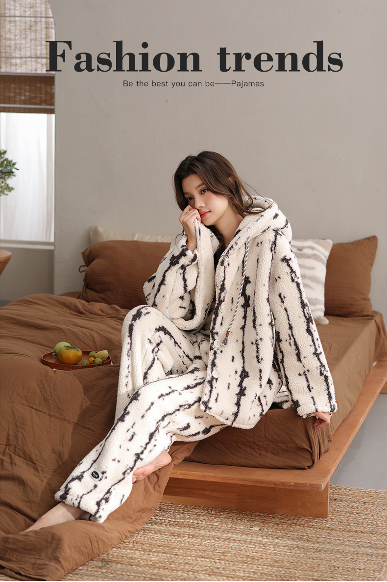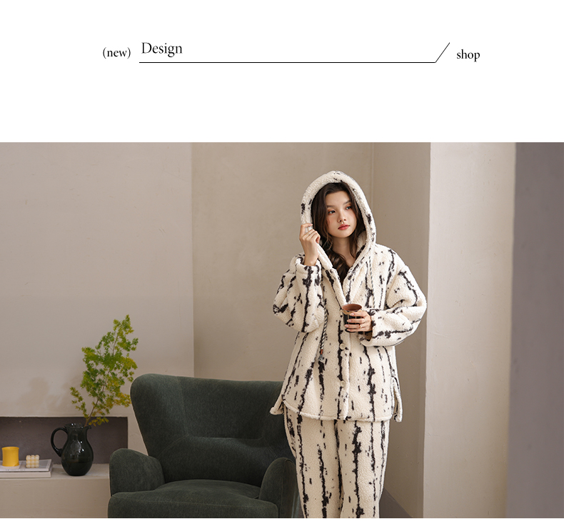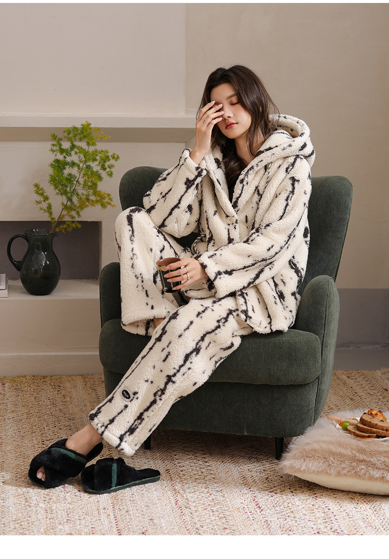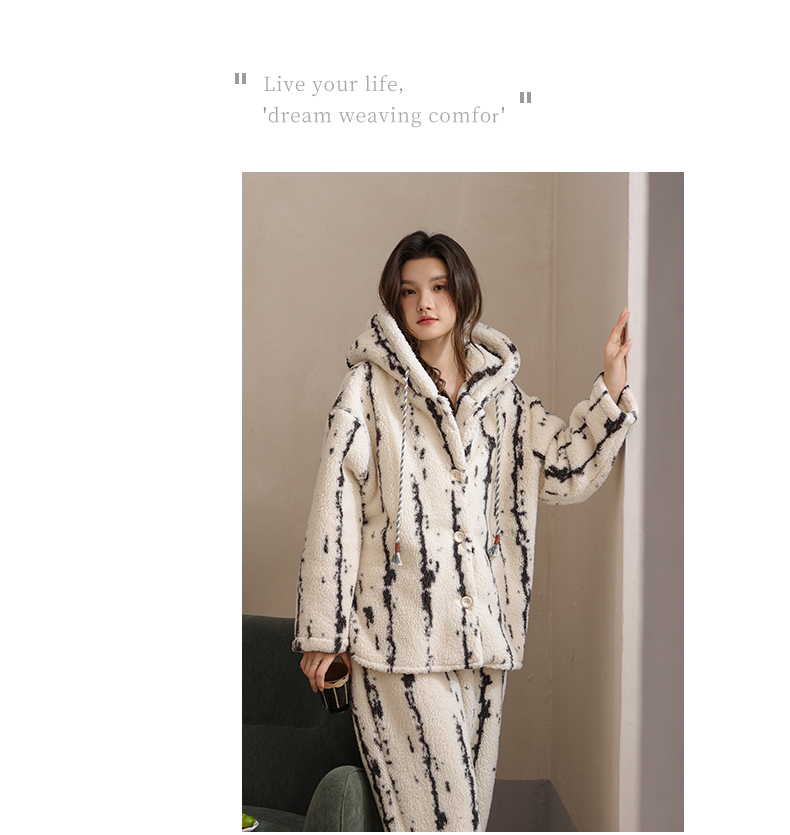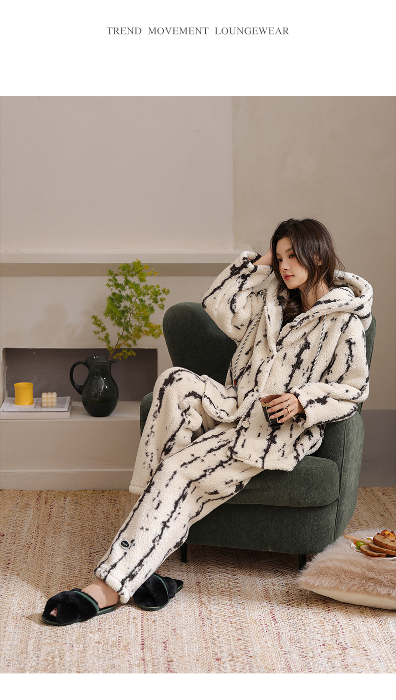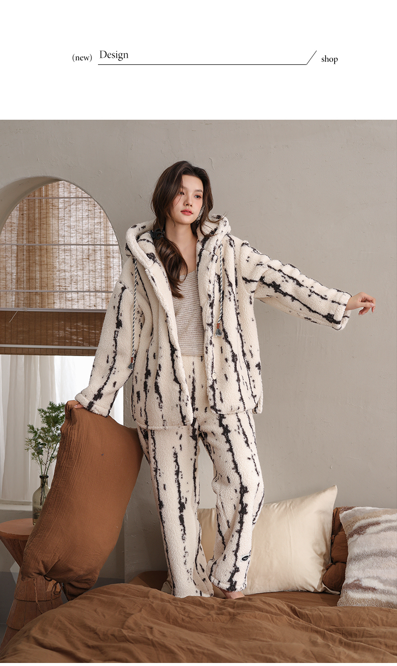 可人儿原创冬季羊羔绒女士睡衣韩系加厚保暖可外穿珊瑚绒家居服