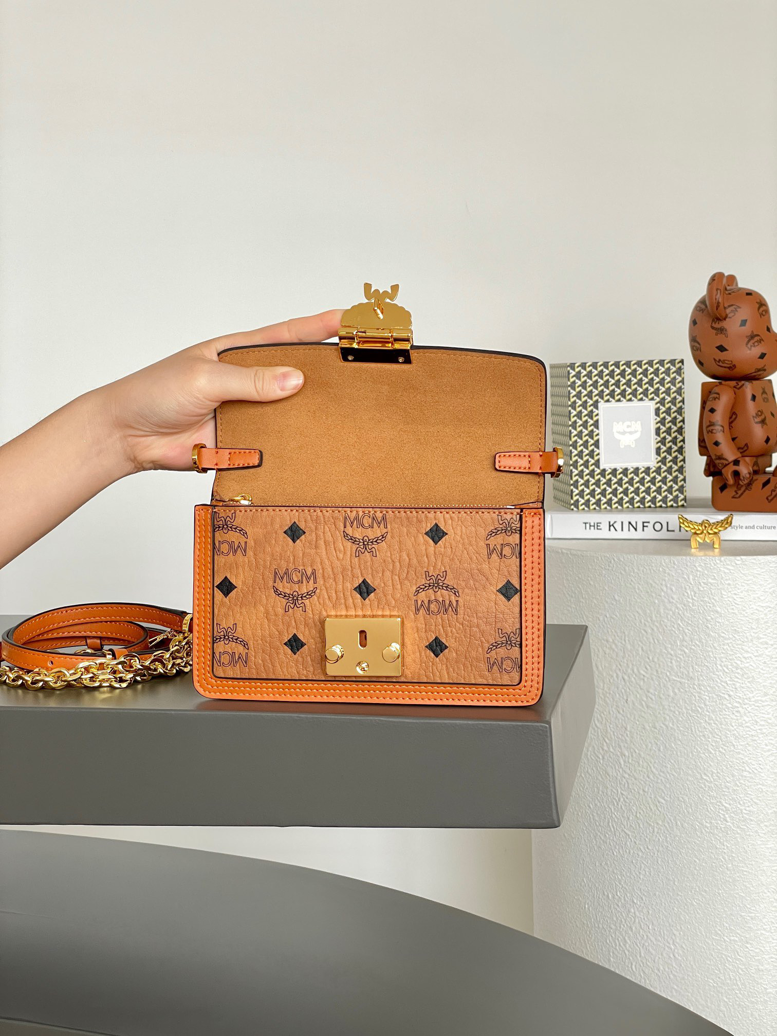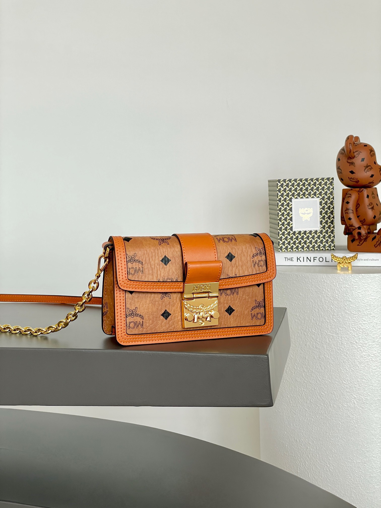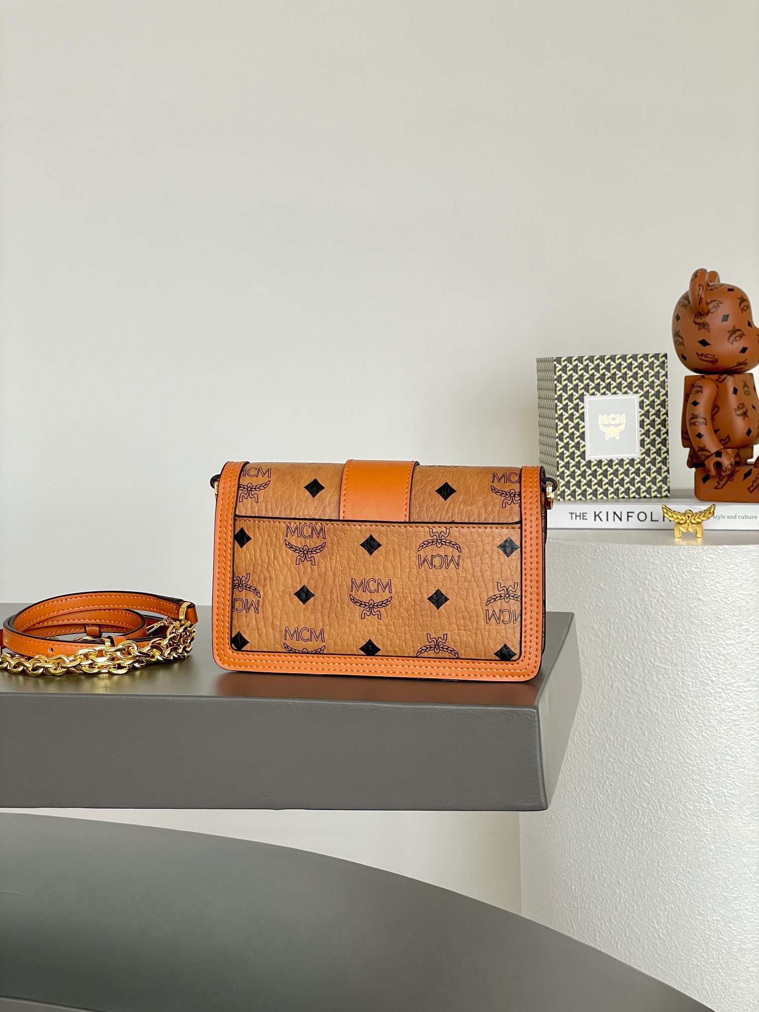 秋冬特惠💰780 原单MCM 原厂皮 原厂新五金 链条斜挎包MWPBAWO05CO001 经典干邑色
